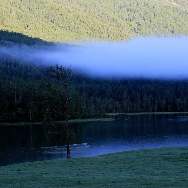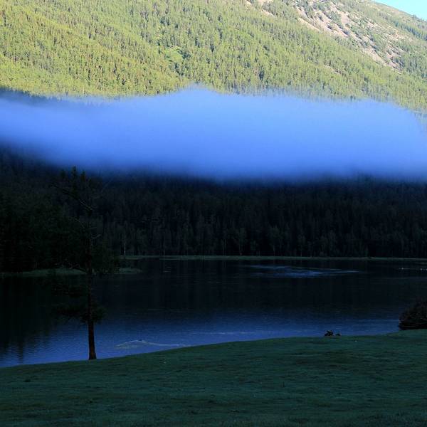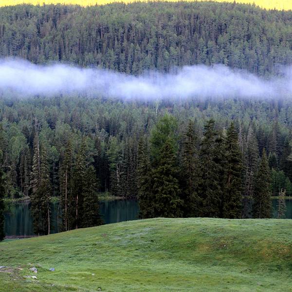 建议在喀纳斯里住一晚上,带上睡袋和帐篷。第二天6点起床,能看到神仙湾上飘着一层白色的气体,就如同游走在云彩中间那般。