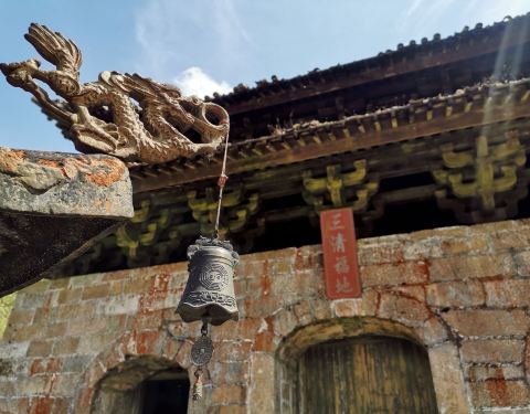 雾气笼罩了三清宫,让人不便窥得其全景,大殿前有“清净”二字,非常应景在一片烟雨朦胧中来到了三清宫,古朴的石牌坊左右供有两殿,虽然已有侵蚀,但仍然看得出古代雕刻的精巧和用心。雾气笼罩了三清宫,让人不便窥得其全景,大殿前有“清净”二字,非常应景。