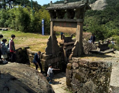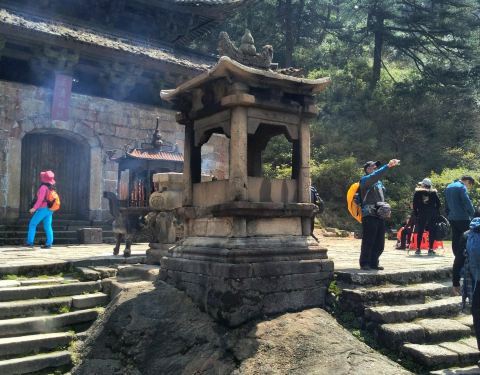 三清山算是道教名山,在前往三清宫景区的途中,有一些石制的神龛,还有一些古人墓,仔细看了一下说明,大多是唐代时期建造的,历史好久远啊,在这深山之中,感觉这道观也极尽古朴。天都黑了,才到的三清宫,清明时节,露营的人还是好多的,这儿绝对是露营者的乐园,边上有天然的山泉水,附近也有洗 手间,人多露营,也安全,在这儿可以真正切切地感受到了美丽三清山的清新和自然......不过,下雨天啊,日出就没的看了,但是古老的三清宫,加上雨雾朦胧,特别有仙境的感觉。三清宫是一个很小的庙,天黑才到,天亮又离开,不知是不是这个原因,庙是关起来的,什么也没有看见,也没看见道士呀,挺遗憾的。另外,觉得这儿的人挺厚道的,在这边吃一碗方便面用了10元,我个人觉得很便宜了,毕竟挑山工也好辛苦,节假日,紧张得很,就算30都有会吃的,淳朴。