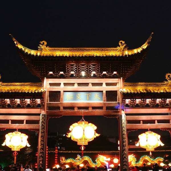 金骆驼 夫子庙除了古老的建筑风格外,因其邻近秦淮河而成为秦淮灯会的主要观赏区域南京夫子庙是供奉和祭祀孔子的地方,也是中国四大文庙之一。夫子庙除了古老的建筑风格外,因其邻近秦淮河而成为秦淮灯会的主要观赏区域。我们这次去正好赶上了每年春季举办的第28届中国秦淮灯会。夫子庙游船码头...南京夫子庙是供奉和祭祀孔子的地方,也是中国四大文庙之一。夫子庙除了古老的建筑风格外,因其邻近秦淮河而成为秦淮灯会的主要观赏区域。我们这次去正好赶上了每年春季举办的第28届中国秦淮灯会。夫子庙游船码头边灯火璀璨,对岸河中支起了巨大的水上舞台,古典音乐的烘托下,舞者身姿更显婀娜,这才是古人所说的歌舞升平的景象吧。夫子庙越是晚上越热闹,人也会相对较多