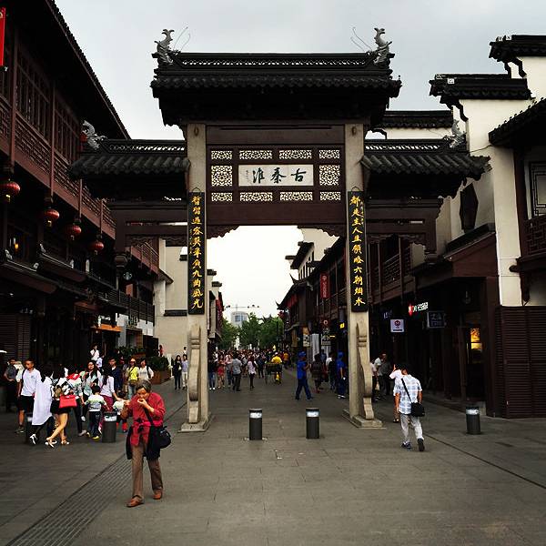 夫子庙景区东西南北都有出入口,地铁前往的话,一般是北入口,高高的夫子庙牌坊,不妨先合个影。进去之后,最初的一段是个商业街,店铺装潢和环境不是很融入,商业气氛浓郁,很是破坏古迹氛围,建议沿着庙旁的小路走,虽然商业开发的也已经很明显了,但相比主街,弯弯曲曲,狭窄的街道更有历史韵味。