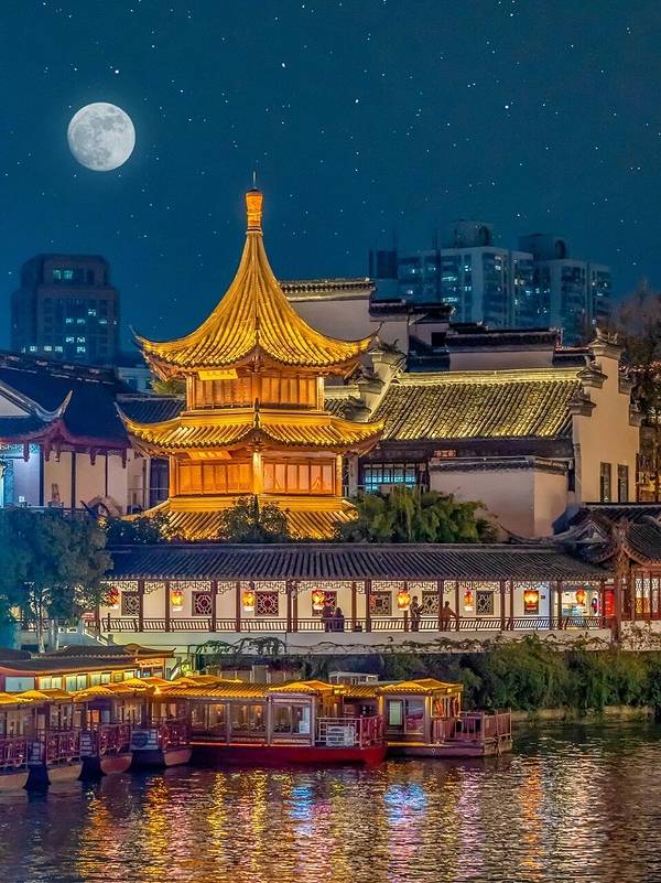 💡秦淮河哺育着古老的南京,而现在逐渐成为金陵城的繁华地带。行走在铺满青石板的路上,从灯光到建筑,从河流到船舶,都体现着时代发展的历史。