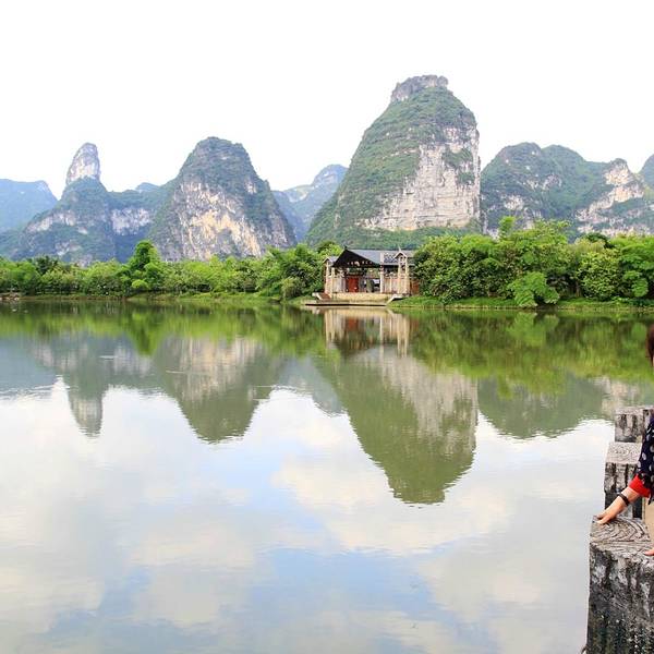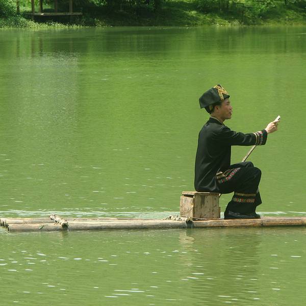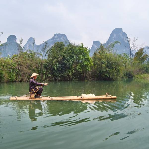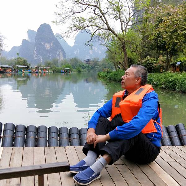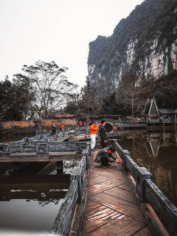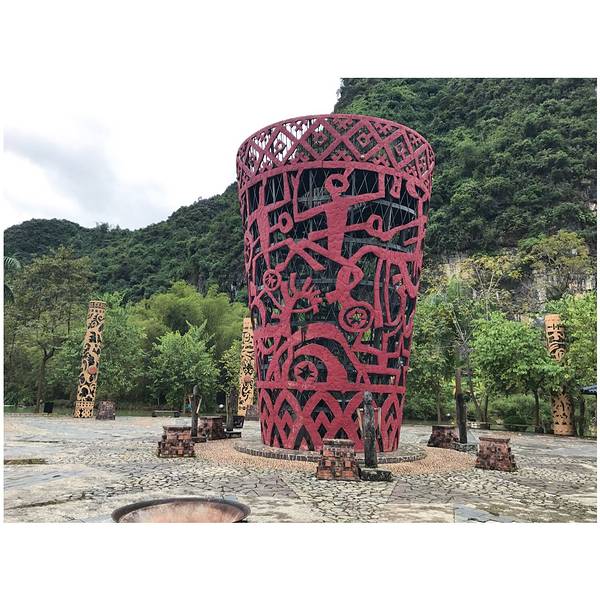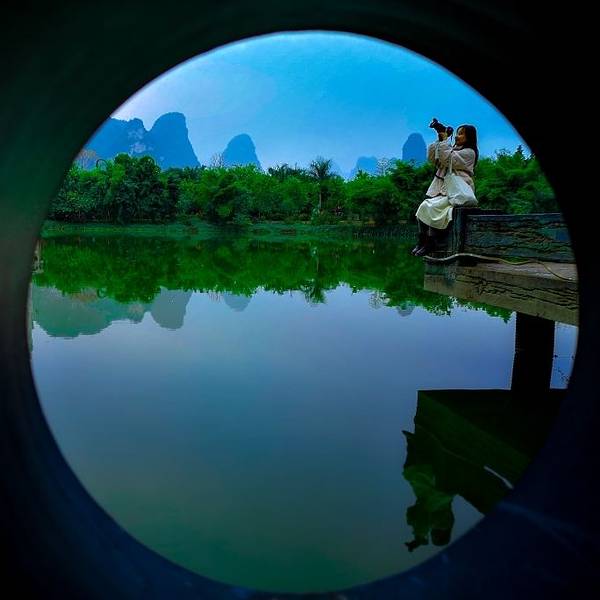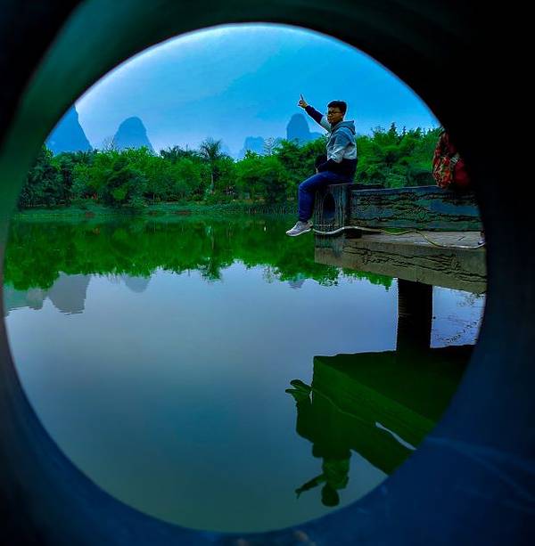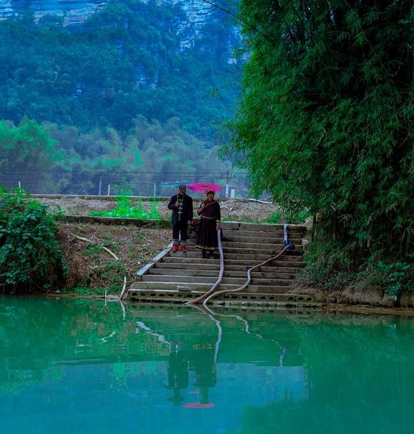2⃣景区还特意在明仕河边安排了三处体验壮族风情的小人文景观,一个是在竹林中的笛子独奏,只闻笛声不见人,俨然一副绝世高人的感觉,一个是一对壮族夫妻在河边为你唱山歌,不过旁边的超级大水管很出戏,最后一个是戴斗笠的渔翁坐竹筏泛舟于山水中,时不时可以跟大家互动下。