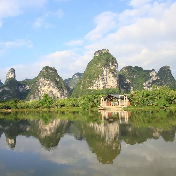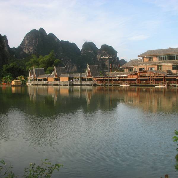 明仕田园位于崇左市大新县西侧,距离有名的德天跨国瀑布景区约一个小时车程,游客通常会将两个景区一并游览。明仕田园是独特的喀斯特地貌,山势俊秀,周围又有流水环绕,景色极为漂亮。 景区除了山水相映的景色外,还有清新淳朴的村寨、农田等风光。游客来此可以乘竹筏漂流、拍照观景,感受美妙的景色和宁静的田园生活。热播电视剧《花千骨》曾来此取景,使这里更是声名大噪。 明仕田园面积很大,主要包含明仕河上游自然的河流、田园风光和下游处建设的明仕田园壮族民居博物园等。游客前来游玩有竹筏漂流和陆上观光两种方式,一般准备半天时间前来游玩比较合适。也有很多游客会选择在景区内住宿一晚,悠闲地感受周围美景,体味田园生活的清新和幽静。 竹筏漂流是游玩景区热门的方式,可以先到达下游的明仕田园壮族民居博物园,在此购买漂流票,有观光车可以将游客送至漂流起点。漂流一共约1个多小时,船上配备导游可以一路讲解。漂流的路上能看到倒映在河水里的秀美山峰,景色和桂林的黄布倒影等风光十分相似;还会经过阡陌纵横的农田区、安静的村庄等,一幅幅乡村画卷让人心旷神怡。 竹筏漂流的终点便是明仕田园壮族民居博物园,里面有图腾广场、人工湖景、壮族村落、土司民居、风情小街等,主要都是反映壮族风俗的雕塑、民居建筑,可以简单参观一下。另外这里还常有壮族歌舞表演,遇到了可以停下脚步观赏一番。 另一种游玩的方式是陆上观光,先是观看明仕田园壮族民居博物园,然后可以在此租赁一辆自行车骑行,在周围游玩观光。自行车多为从当地宾馆或农家租赁,租赁时会给一张骑行的路线图,沿着景区旁的公路,有几条路线可供选择。一般推荐的是向西北方向(即向河上游方向),便可以观看到与竹筏漂流类似的优美喀斯特和田园风光。 住宿餐饮 明仕田园档次较好的住宿地点是大新明仕山庄,就在景区内,有环境优美的景观房和特色的民族装饰等。景区外有大新明仕艺术酒店、名仕快捷酒店等快捷式宾馆,还有一些当地的农家民居,环境都还不错,可以根据个人兴趣选择入住。 用餐也大多是在住宿的地方,可以点一些地道的农家菜,品尝一下,品味乡村生活。