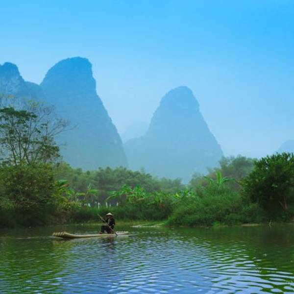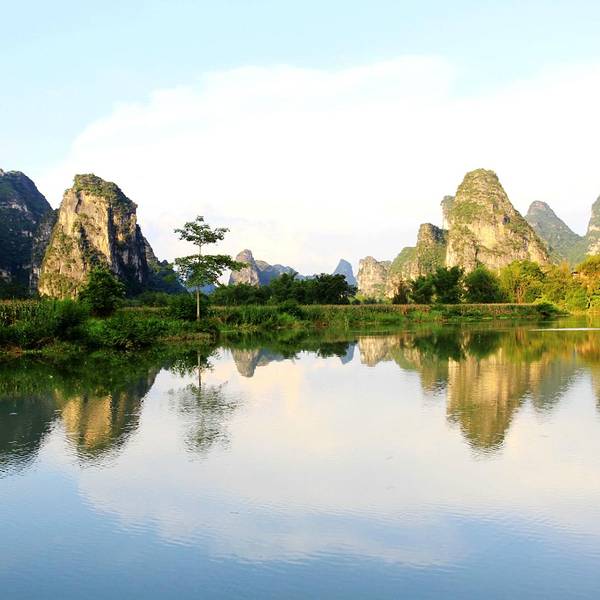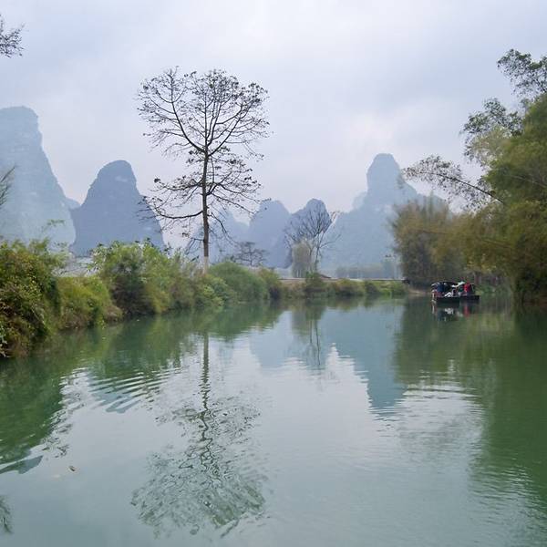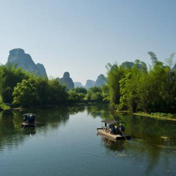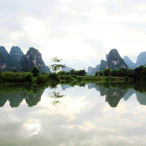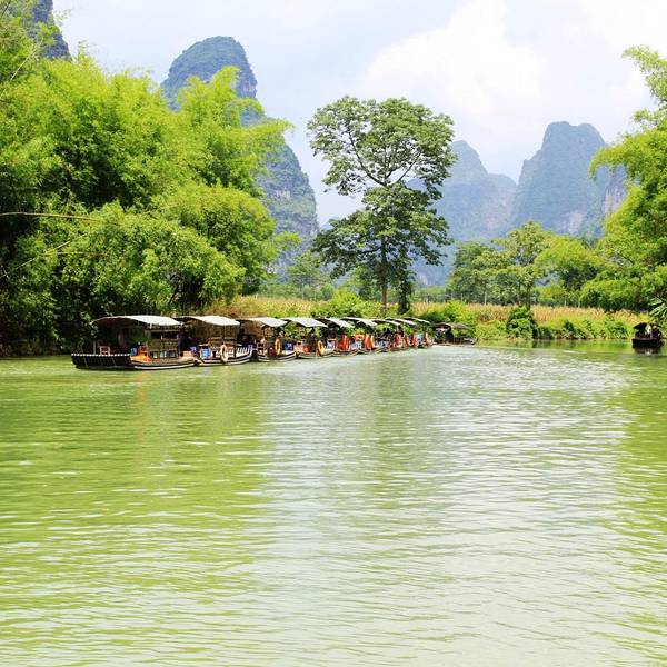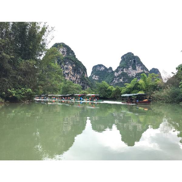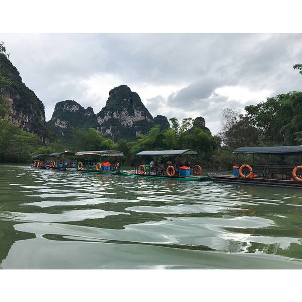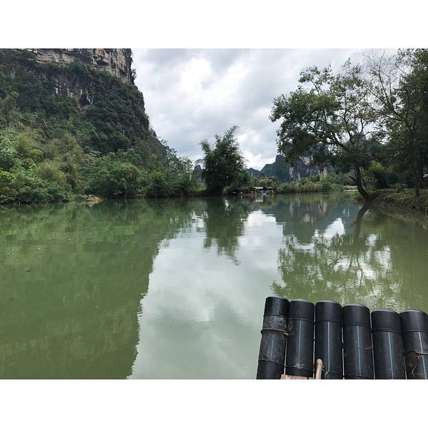 1⃣山清水秀,山水环绕,农舍点缀,风光俊朗清逸。坐竹筏潜行在明仕河,壮族阿妹为你讲解壮族风情,时不时还会为你唱一曲壮族民歌。