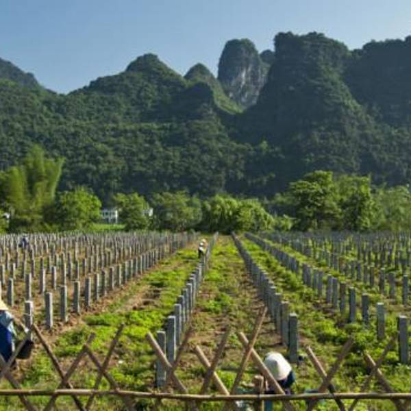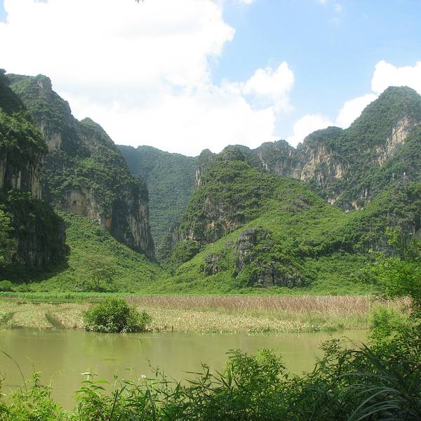 俊秀山峰间流水环绕、农田壮寨相辉映,风光绝美,不亚于桂林。