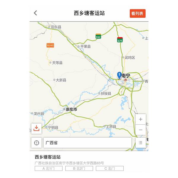 金骆驼 房间的照片,因为是晚上,所以拍出来的效果不怎么好,不过确实是很漂亮的,推荐👍🏻。时间还是很宽松的早上5点半起床,6点钟前往江门东轻轨站,7:11的动车前往广州南。到了广州南之后换乘8:30的高铁去往南宁站(是南宁站不是南宁东),到了南宁站之后,根据指示牌换乘地铁(出站100米左转不远就会看到),坐7个站...早上5点半起床,6点钟前往江门东轻轨站,7:11的动车前往广州南。到了广州南之后换乘8:30的高铁去往南宁站(是南宁站不是南宁东),到了南宁站之后,根据指示牌换乘地铁(出站100米左转不远就会看到),坐7个站到达西乡塘客运站(因为西乡塘客运站有一班车是15:10直达到明仕田园的),其他很多车都只是到大新县,大新县距离明仕田园还有1.5小时的路程。这地图可以让你们了解到大新县的大概位置南宁东站是新站,在郊区,也就是火车东站,那里附近有个琅东客运站,很多车到大新县。