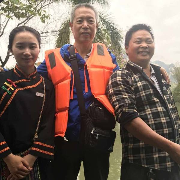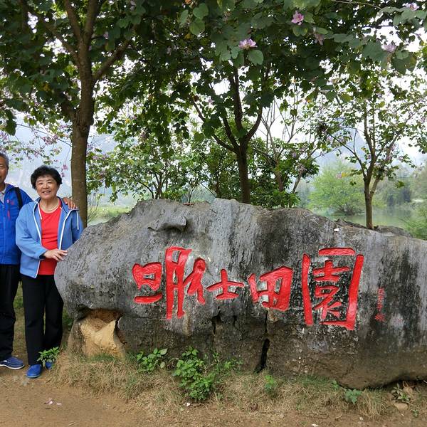 金骆驼 从桥孔中看我们像不像来到人间仙境。美丽的田仕明园,作为电视剧《花千骨》的外景地而闻名中午时分我们来到了明仕田园景区。明仕田园位于靠近中越边境的广西省崇左市大新县堪圩镇,距离南宁210公里,距离著名的德天大瀑布37公里。门票100元/人,60岁以上半价。明仕田园方圆20公里的景区山清水秀,山环水...中午时分我们来到了明仕田园景区。明仕田园位于靠近中越边境的广西省崇左市大新县堪圩镇,距离南宁210公里,距离著名的德天大瀑布37公里。门票100元/人,60岁以上半价。明仕田园方圆20公里的景区山清水秀,山环水绕,素有小桂林之称。这个黑衣壮族美女是我们游船上的导游。黑衣壮”是壮族的一个支系,主要聚居在广西那坡县境内。他们崇拜黑色,把黑色作为服装颜色和民族标记,这个“以黑为美”的民族以独特的民风民俗被人类学家誉为壮族的“活化石”。这里青山绿水,相互辉映,形成许多秀丽景点,而最为人称道的,莫过于明仕河。乘坐竹筏畅游明仕河。我们游船上的壮族船夫阿牛和导游壮族阿妹。美丽的田仕明园,作为电视剧《花千骨》的外景地而闻名。从桥孔中看我们像不像来到人间仙境。明仕壮族民居博物园是明仕田园的核心景区。由黑衣壮寨、图腾广场、壮廊、明仕大舞台等组成。我们在壮寨前留个影,来到大舞台前看完浓郁壮族民族风情演出,结束了我们的游览。晚上,我们住在了边陲小镇硕龙,这里距德天瀑布仅3公里。这是我国界碑,隔河相望就是越南。小镇街上壮族老阿妈做的甜、咸两种糍粑,真是美味呀! 展开