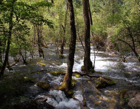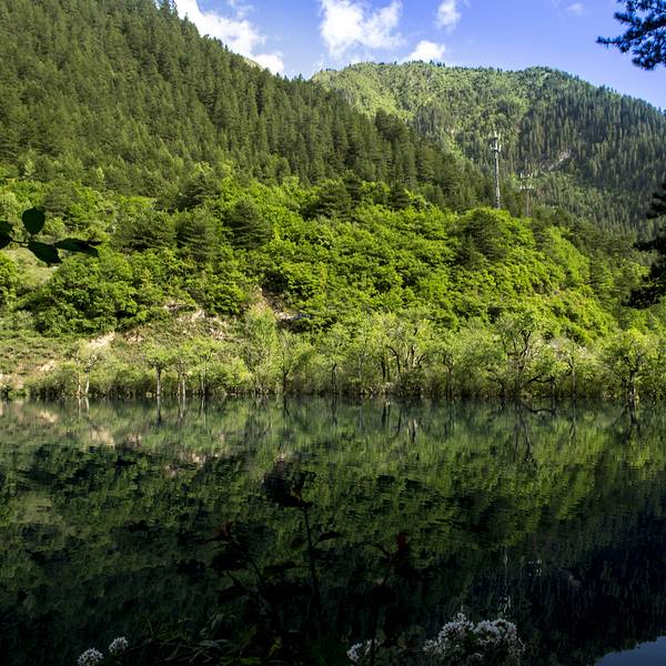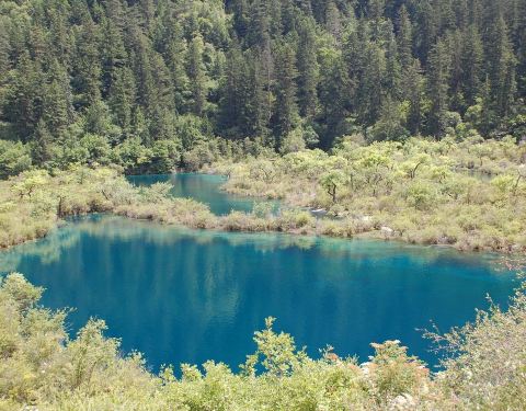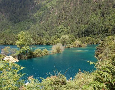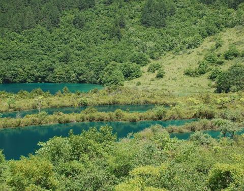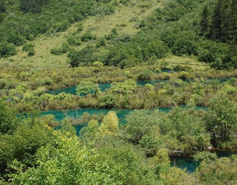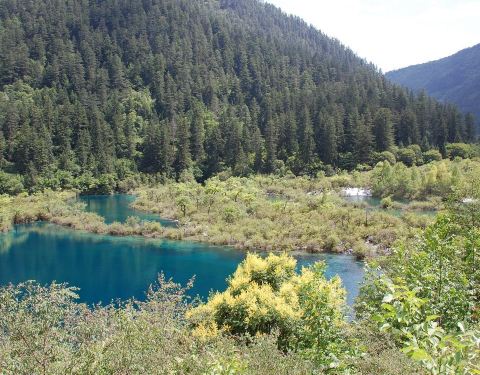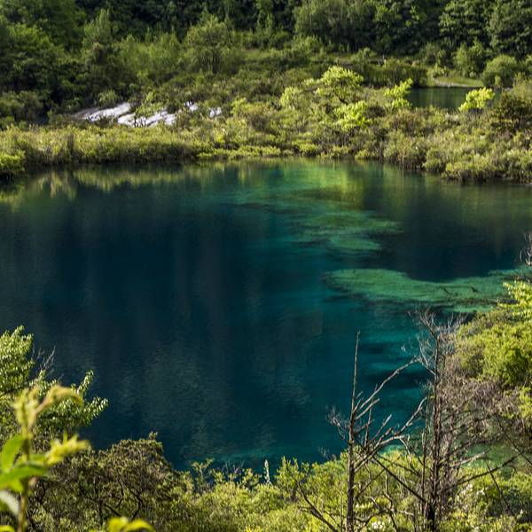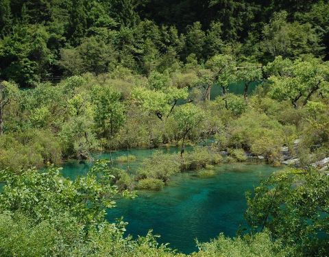 不过这些数据其实都不重要,重要的是那无以复加的绿中套蓝的色彩树正群海在树正寨的正对面,树正寨是九寨最大的一个寨子