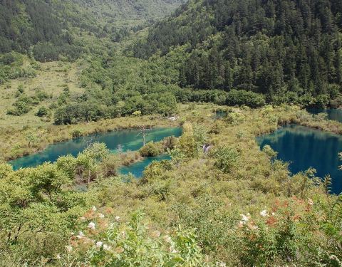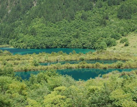 ...个海子,有的湛蓝、有的碧绿,随着河水的流动,海子间产生了很多瀑布,错落有致,波光粼粼,非常漂亮树正沟全长十多公里,在带状的沟内分布着大大小小上百个海子,有的湛蓝、有的碧绿,随着河水的流动,海子间产生了很多瀑布,错落有致,波光粼粼,非常漂亮。