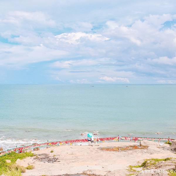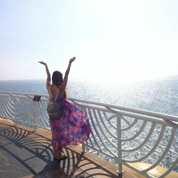 市内出租车至南山大概40分钟左右车程,费用80-120元左右。个人觉得三亚的出租车并不划算,出租车司机并不那么友好~之前五分钟的路程收费35,跟他讲价他比你还凶~所以果断选择公交~远远的就看到一尊高108米的南海观音像矗立在眼前,南海观音全身洁白,有三面,一个面捧着一本书,一个面拿着一朵棉花,还有一个面拿着一串佛珠,她身上挂着一把宝剑,这把宝剑是寺庙的法物,她面带微笑,好像在说祝你们平安。接着我们又参观了大殿,注意了大殿内是不允许拍照的哦,里面有许多金光闪闪,形态不一样的佛,竟然还有代表十二生肖的佛,一个一个的找到了属鸡的,我别提有多高兴了。 出了大殿,外面是海天相接的景色,海水碧蓝,海风悠悠,金色的沙滩在阳光的照耀下,闪闪发光,像铺了一地金子,我陶醉在这美景中,久久不愿离去,我爱上了大海,爱上了三亚远远的观音脚下看海~