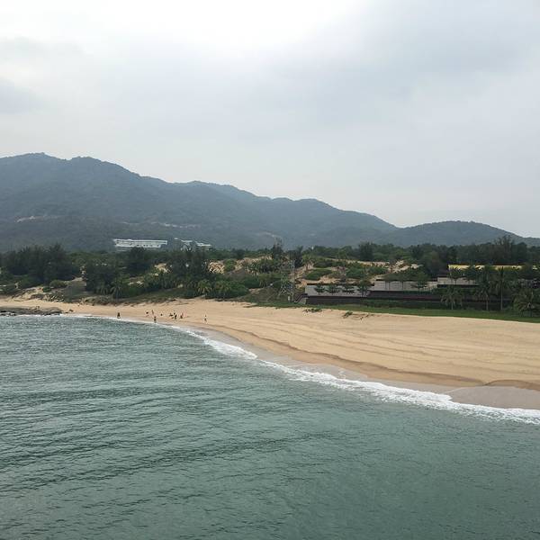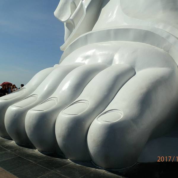 惜不能走进有围栏,不然真想去踩踩沙,踏踏浪~参观完沿着楼梯排队上去的就到了南海观音的脚下,记得去抱抱佛脚哦后,我们看到三面观音,对着观音虔诚的祈祷,并抱下佛脚,然后就许愿完成了; 展开