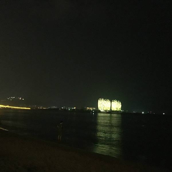 这一盘的海鲜我记得是不到一百,最多不超过120块钱,真的超级便宜,味道也很不错。大东海的夜晚晚上的大东海还是很有人气的,有跳广场舞的大妈,沙滩上也有很多人躺着吹着海风,静静地坐在那里真的很舒服,对面比较亮的地方就是凤凰岛。 展开