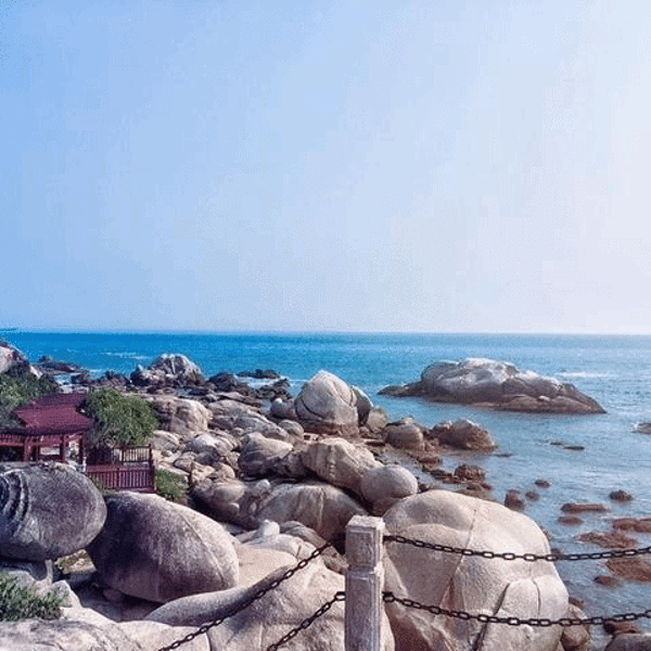 寺庙门口有个很大的平台,可以观海景,或许是这边游客少的缘故,海水特别清,感觉这里的海比蜈支洲的还要美。