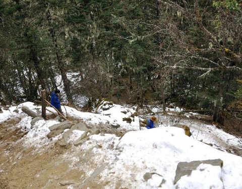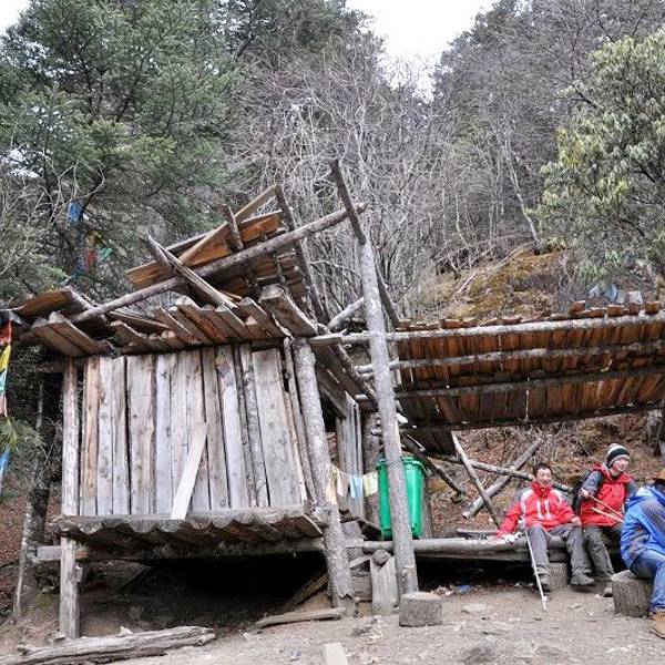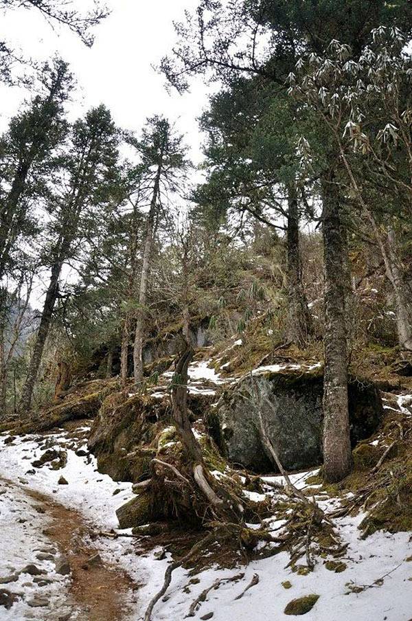 从雨崩村步行到这里正常情况下是3个小时左右,一定要安排在上午出发,中午抵达大本营,下午两点钟之前下山这样才算安全的徒步选择,因为到了晚上这里的山区的路就看不到了,会幽灵般的让人觉得整个世界被下了魔咒一样无法辨别方向,如论如何寻找都看不到来回的路了,对于一般人而言尤其是业障深厚的人特别要小心。