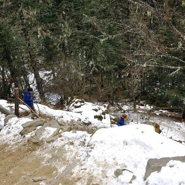 昨晚2点多才睡,我又有认床的毛病,一直睡得都不踏实,6点多的时候,天还没有亮,我趴在窗上往外看,哇!好美哦!天空幽蓝幽蓝的,远处黑压压的山峰, 梅里雪山 泛着幽幽的白,天空下起了小雪,那小小的雪花像一个个精灵似的在天空中飞舞着,屋檐上一层薄薄的雪花。可惜藏族的房子的窗户是平着房子的,要是漂出去的窗户就好了,我就可以裹着被子躺在窗台上慢慢地欣赏了。没办法,欣赏了一会儿冷得受不了了赶紧钻被窝又眯了会,7点多的时候天才亮了一点点,但不得不起床了,起床洗漱后把登山包整理好拿到楼下雅梅他们的房间等下一块寄存。早餐有面条,10元一碗,还有青稞饼,10元一张,阿峰要了一张青稞饼中午路上吃,我还有一个方便面没吃完,就没要早餐了,打算把那个方便面解决了减轻负担。雅梅说要是在房东那买的方便面他就给开水泡,不是的话他就不给开水,于是听雅梅的我就用她保温瓶里的开水偷偷地泡方便面吃了,然后叫雅梅再去打过开水。没想到真难吃,高原上的开水其实是没有完全开的,泡的方便面是我有史以来吃的最难吃的方便面了,但是没办法不能浪费,不吃哪有体力徒步大本营、冰湖呀,所以咬咬牙也把它塞进去了。大伙吃完早餐把包寄存后等林姐,早上手机没信号,我怕林姐找不到我们,还特意跑到门口去希望她能看到我,说好8点出发,可是等到快9点了,林姐还没出现,天空还飘着些小雪花,帅哥4人组合就要出发了,于是大家一致决定不等了,跟帅哥4人组合一起出发,于是我们从上雨崩村开始徒步啦:上雨崩村上雨崩村上雨崩村经过上雨崩村到白塔时,燕飞绕着白塔转了3圈说是祈福。白塔过去是一片草地,好多树:上雨崩村上雨崩村上雨崩村上雨崩村走过那片草地树林就到了转经筒的地方,转经筒的旁边有个小溪,水很干净,景不错,我们在那拍了很多照片:转经筒转经筒转经筒旁小溪走过一座木桥,没走多久大概9点半的时候就结束了平路,开始了上山路段了,偶尔会有一小段冰路。又开始了爬一段路,喘着气站着休息会再爬的过程了。我的脚痛得厉害,但我不想放弃一直忍着痛,还是按老办法,匀速前进不停下来休息,把注意力放在发现美景上,转移脚痛的感觉。刚起步时脚是最痛的,坚持下去,等痛麻木了就好点了,所以从一开始出发我就一直在最后面,给大伙拖后腿了。没办法,我不想放弃,所以就叫大伙前面走着我后面慢慢跟。徒步笑农大本营半山腰上有个木头搭的休息亭,有比我们先到的在那休息:徒步笑农大本营半山腰休息亭开始就是一段乱石上山路段了,路上有许多玛尼堆:徒步笑农大本营徒步笑农大本营徒步笑农大本营徒步笑农大本营快到梅里雪山山顶的时候,我突然看见了小刘和阿峰在我后面,我吓了一跳。 因为他们一直在我前面,怎么突然跑到我后面来了呢?问他们,得知,原来走错了方向,走错了路,我很不厚道的哈哈大笑了一翻。笑完之后才觉得自己太不应该了,人家已经够难受了,我却。。。。。。心想他俩一定在心里把我臭骂了千百遍。
