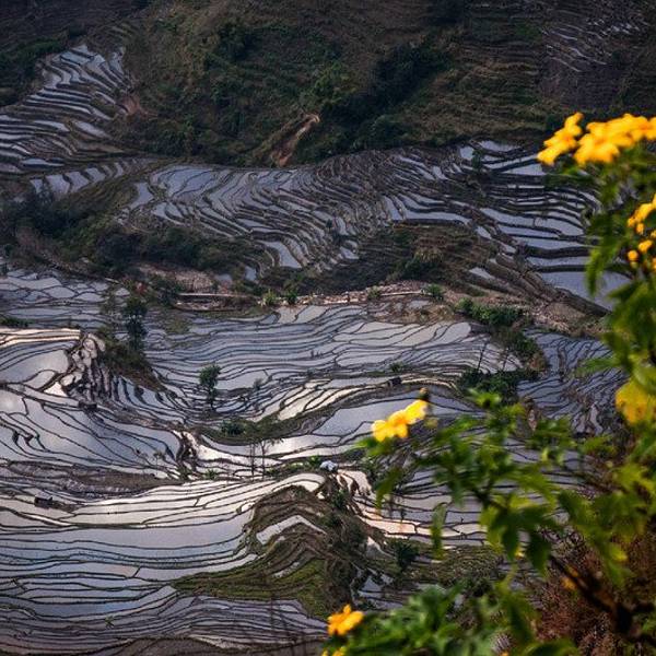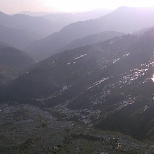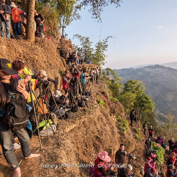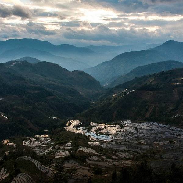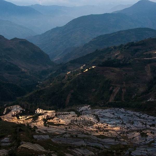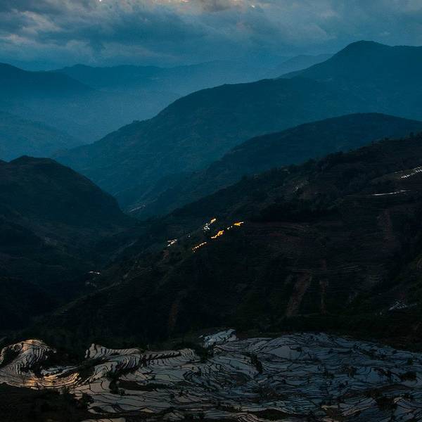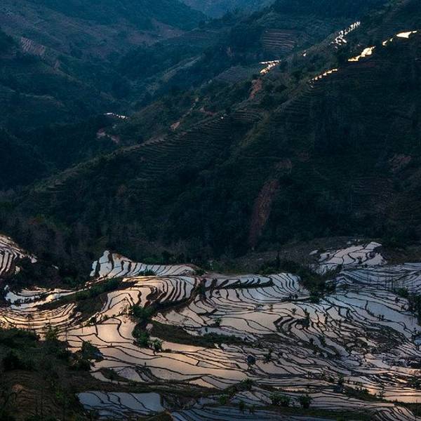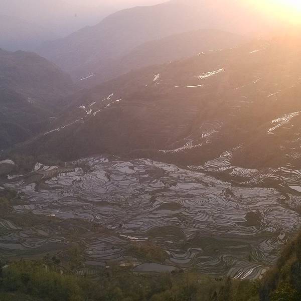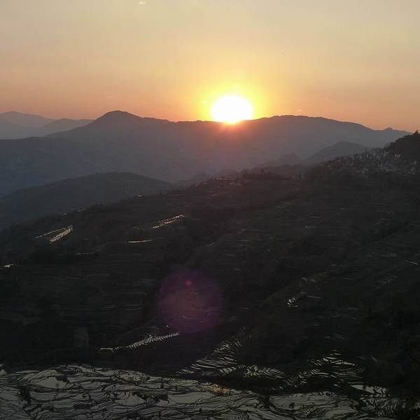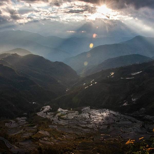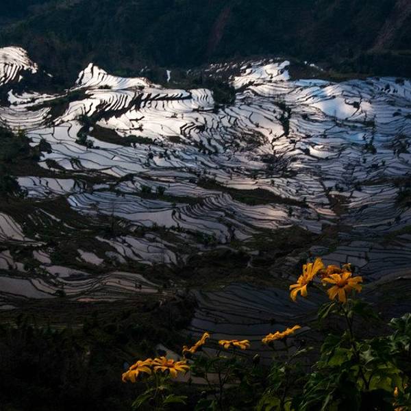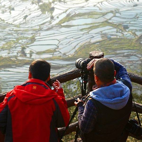 在日落时分,阳光倾泻之下,波光粼粼的水田是所有来到元阳的人所追求的景色,但这要看老天爷赏不赏脸下午4点,越来越多的人往老虎嘴的梯田聚集。为的只是一个好位置。
