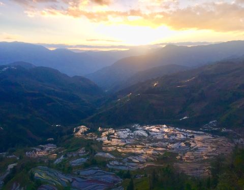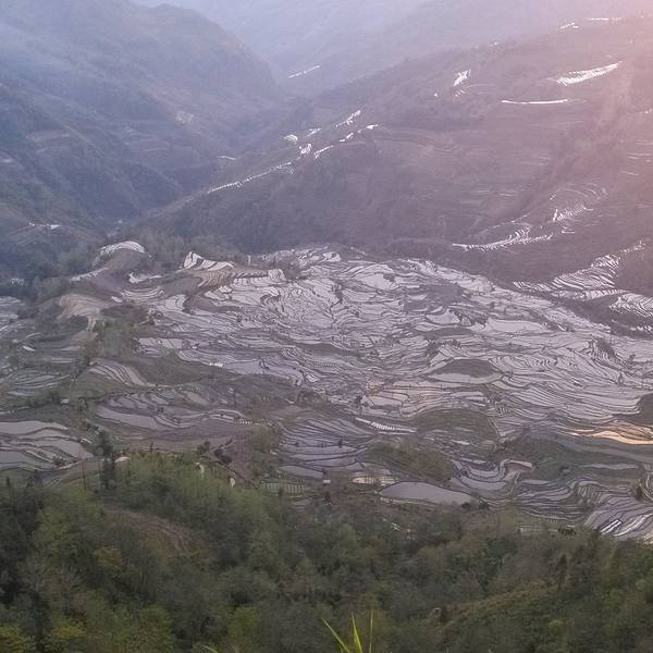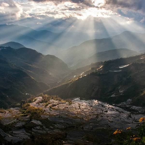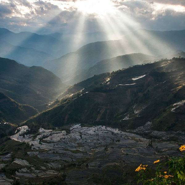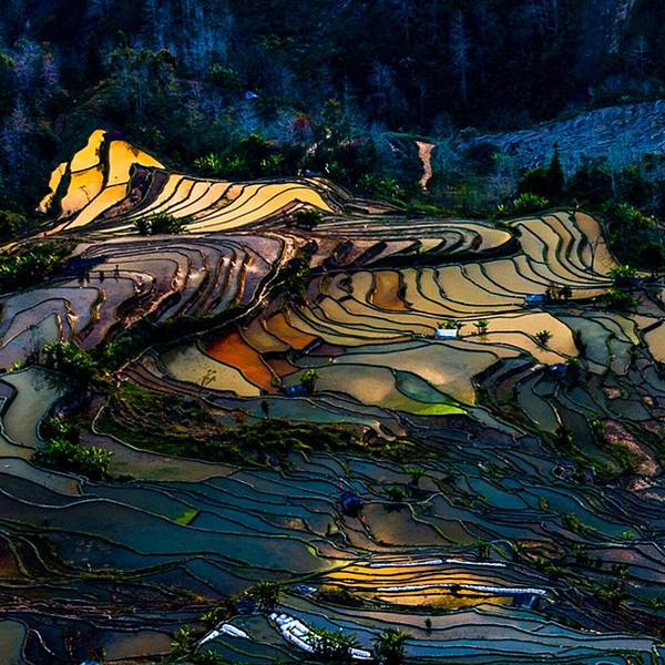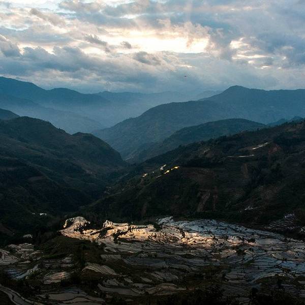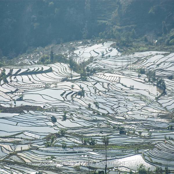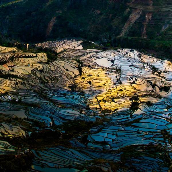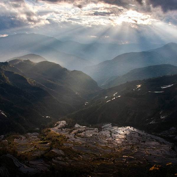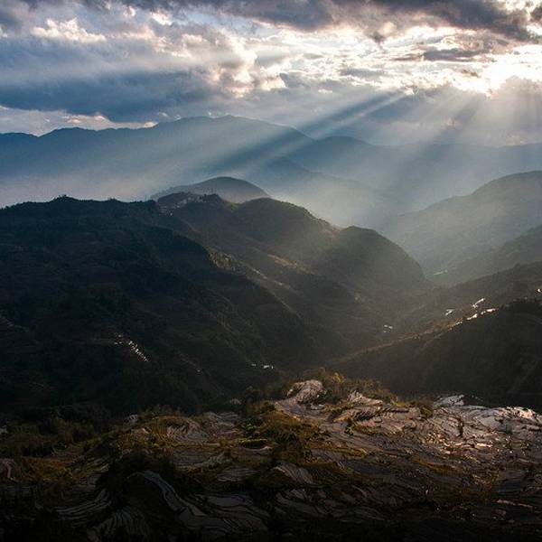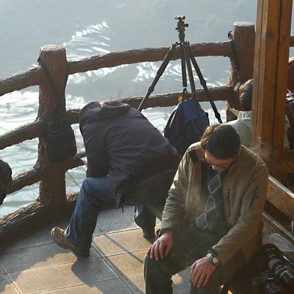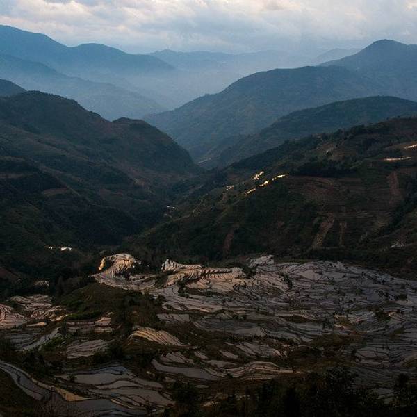 在日落时分,阳光倾泻之下,波光粼粼的水田是所有来到元阳的人所追求的景色,但这要看老天爷赏不赏脸下午4点,越来越多的人往老虎嘴的梯田聚集。为的只是一个好位置。