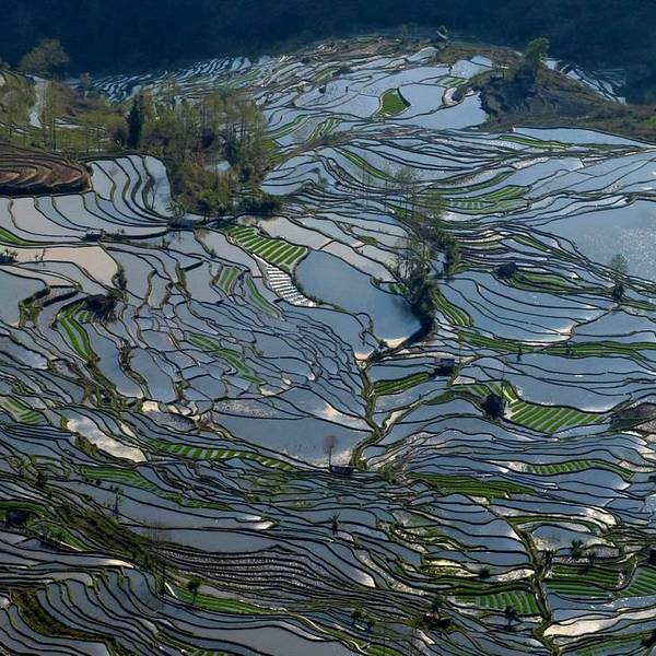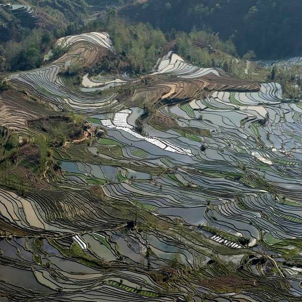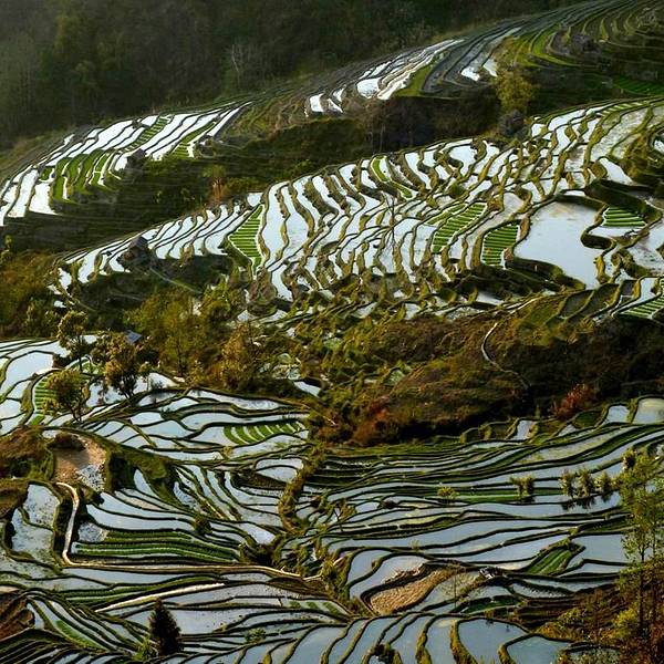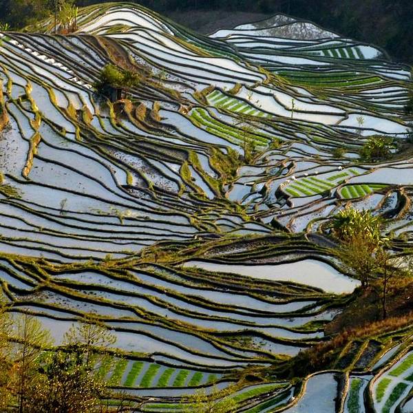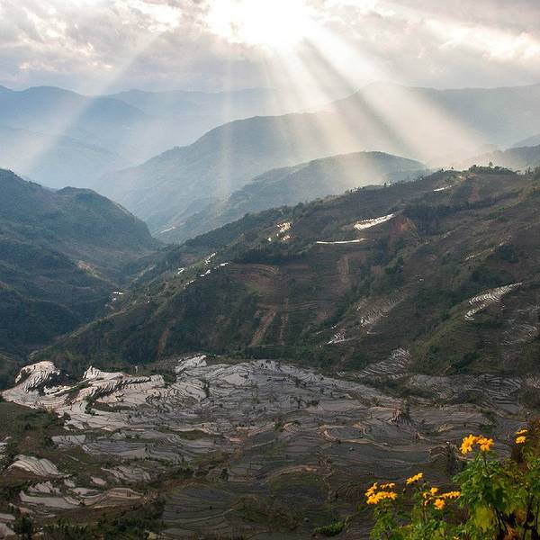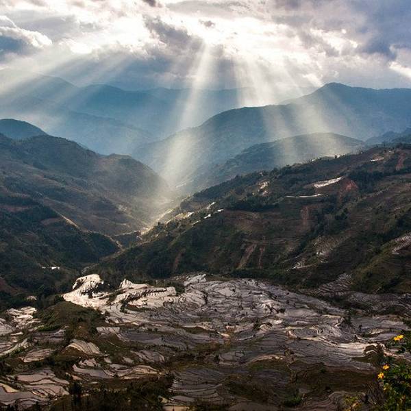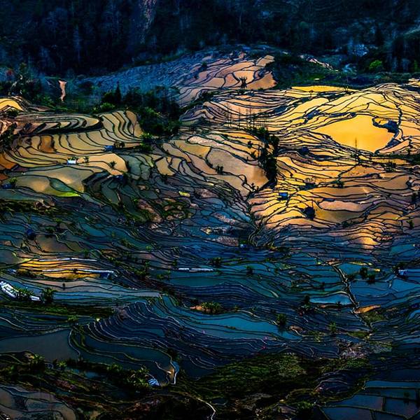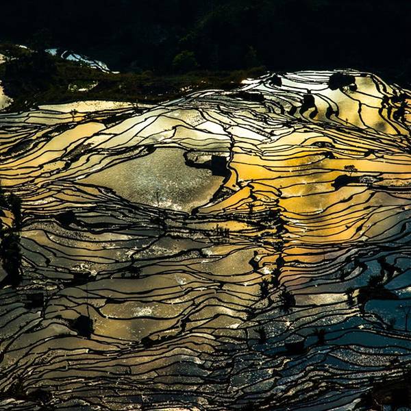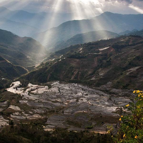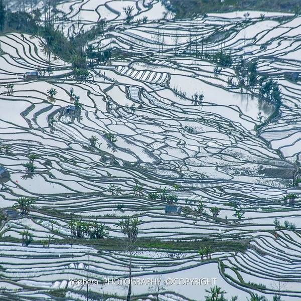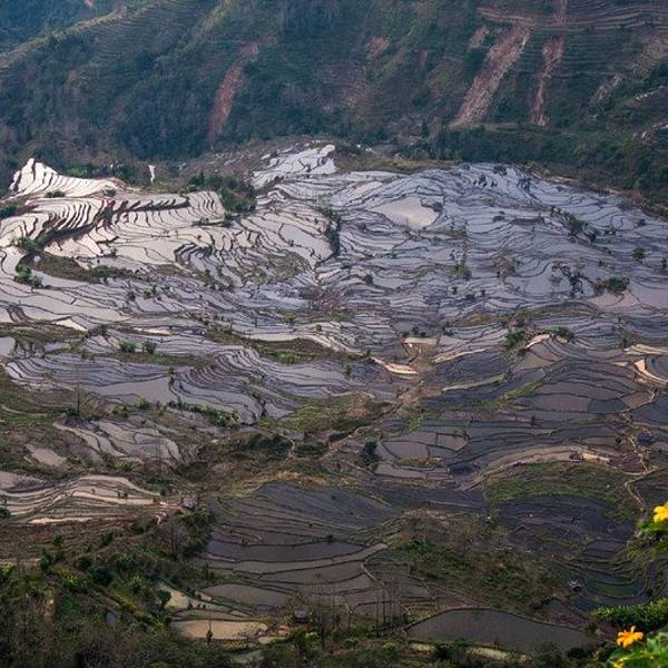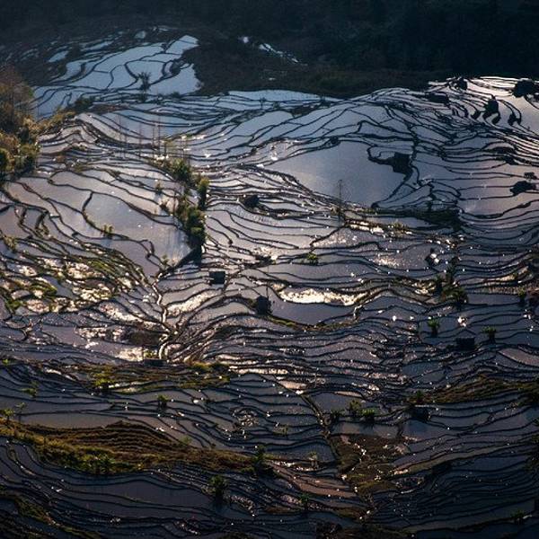 在日落时分,阳光倾泻之下,波光粼粼的水田是所有来到元阳的人所追求的景色,但这要看老天爷赏不赏脸下午4点,越来越多的人往老虎嘴的梯田聚集。为的只是一个好位置。