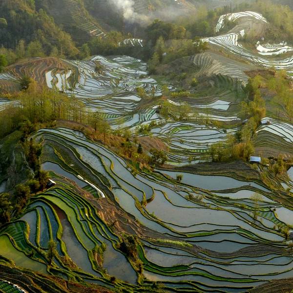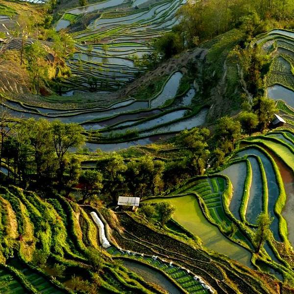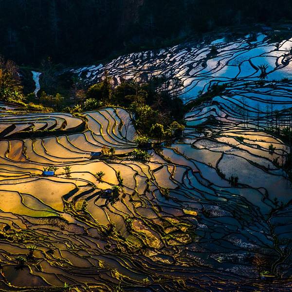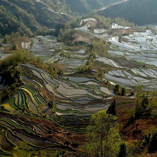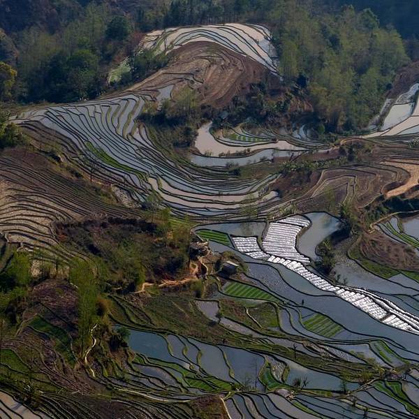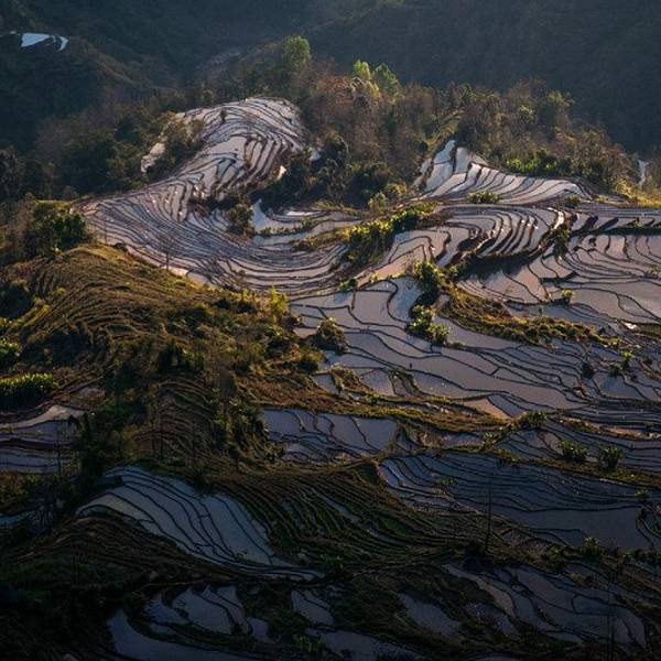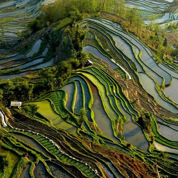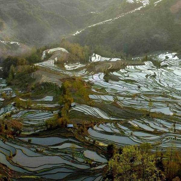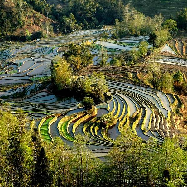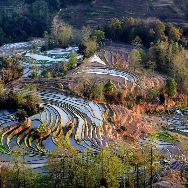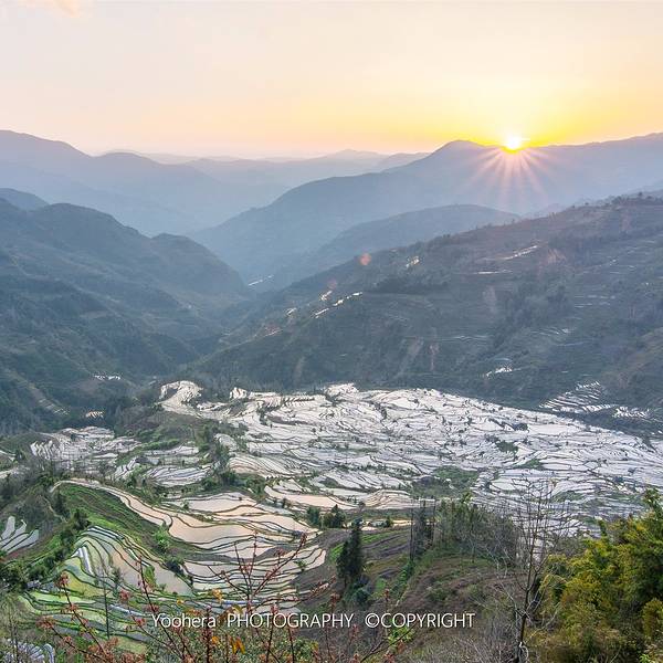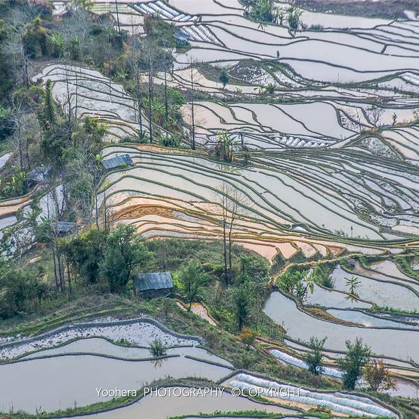 阳梯田最佳拍摄时间为每年11月~次年4月,因为梯田在秋收后要灌满水保养,这个时候看梯田层次感很强,在阳 光的照射下波光粼粼的,很漂亮。