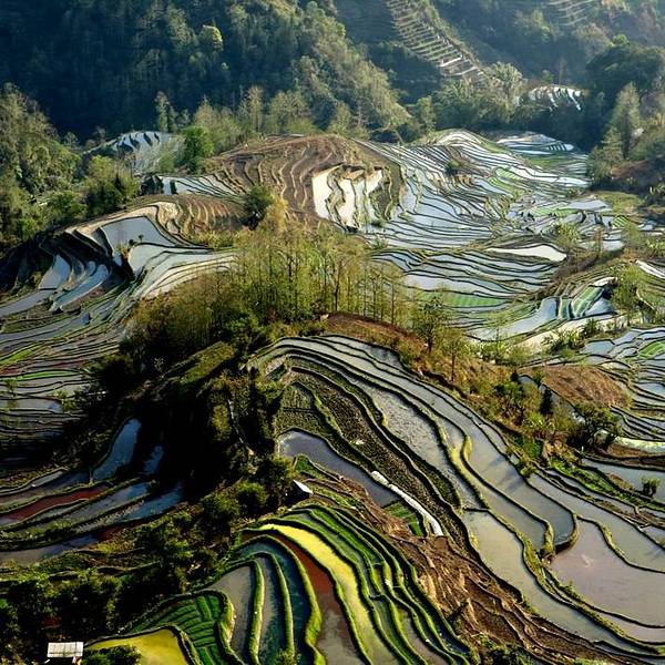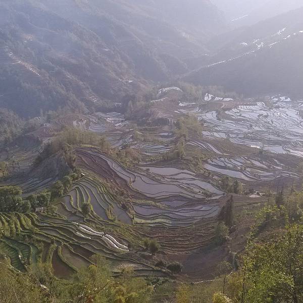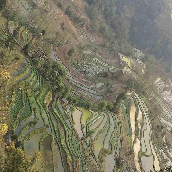似乎老虎嘴更有名一点,所以,我们决定去老虎嘴。随着光线的变化,梯田呈现各种色彩的组合:。放大一点然后,回客栈休息,等待下午去老虎嘴看日落。