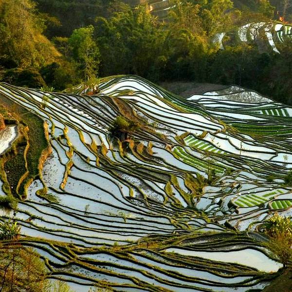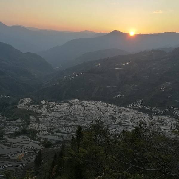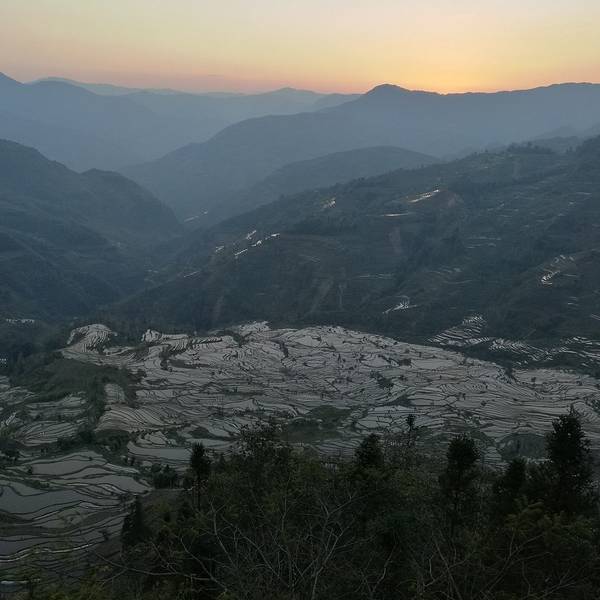 日落时分的梯田倒映晚霞呈现出五彩斑斓的景象,异常壮观!在景区入口处买了100元的票,说是两天有效我们正好下午4点多到达哈尼梯田景区。在景区入口处买了100元的票,说是两天有效。安顿好住宿直奔老虎嘴。进入景区往下的台阶走不到10分钟就抵达观景台,这里已经很多人支好三脚架占好位置等待着了。日落时分的梯...我们正好下午4点多到达哈尼梯田景区。在景区入口处买了100元的票,说是两天有效。安顿好住宿直奔老虎嘴。进入景区往下的台阶走不到10分钟就抵达观景台,这里已经很多人支好三脚架占好位置等待着了。日落时分的梯田倒映晚霞呈现出五彩斑斓的景象,异常壮观! 展开