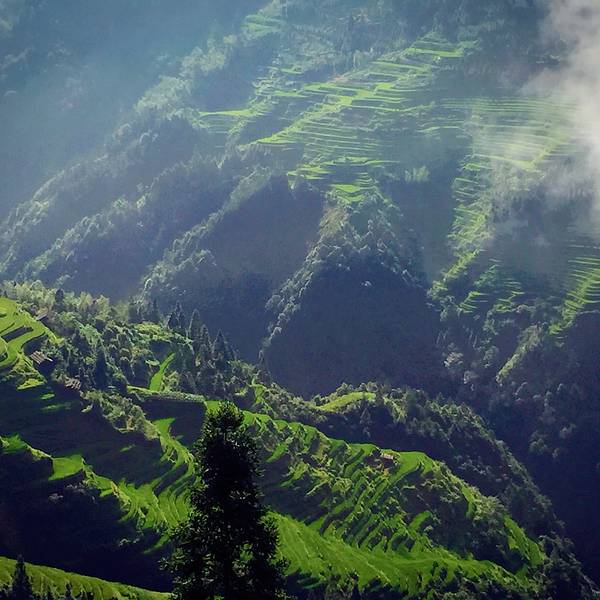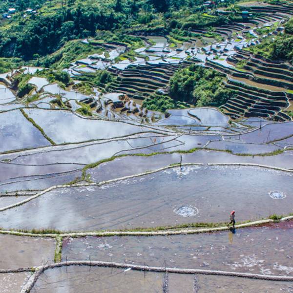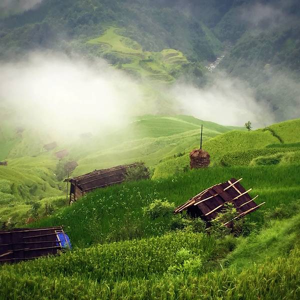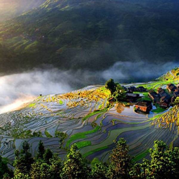 却送来另一种缥缈的梦幻。美丽壮阔的梯田间,