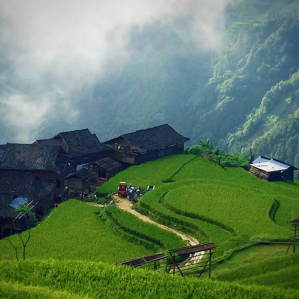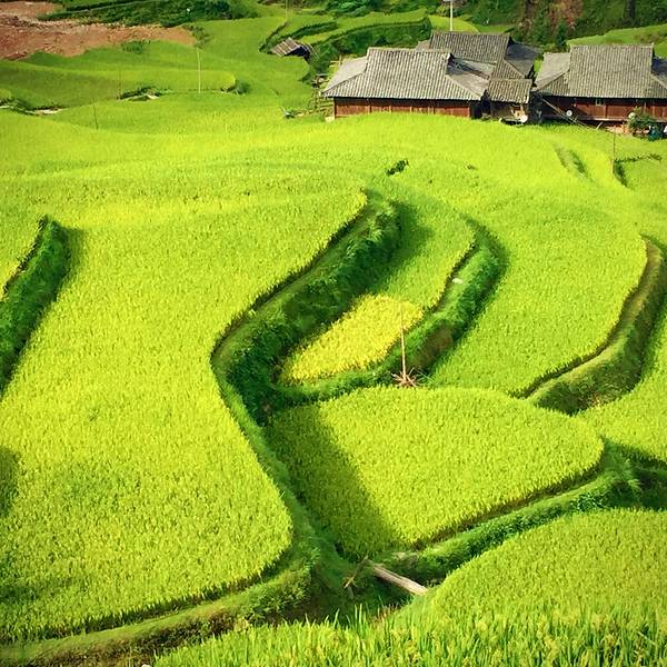 除了延绵不绝的梯田景观,那些散落于田间的村寨与绿色的稻田交相辉映,并纯净的大自然和谐地融为一体,让人感受到了人与大自然和谐相处的美好景象,漫步于这些山村之中,好似置身人间仙镜。