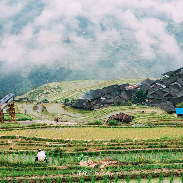 加榜梯田,是此行最让我震撼的地方,强烈推荐!我真不敢想象,在这么陡峭的梯田里,居然有牛这些是加车村至党扭村沿途拍下的梯田。我儿子说,这有什么好看的,就像一块奶酪被啃了一口,呵呵。上图是我们住的客栈下方的梯田景色,这个是螺丝田。第二天早上5点多我就醒了,拎着相机就下山,准备近距离把梯田...这些是加车村至党扭村沿途拍下的梯田。我儿子说,这有什么好看的,就像一块奶酪被啃了一口,呵呵。上图是我们住的客栈下方的梯田景色,这个是螺丝田。第二天早上5点多我就醒了,拎着相机就下山,准备近距离把梯田的各种美拍下来。由于这部分梯田处在两山之间的峡谷中,深度很深,一早上雾气弥漫。我穿的鞋子裤子最终都湿透了。客栈本身有一个小门可以下山,但由于太早了,门没有开,于是我从大门出来向右绕下去,一路顺着小路往下走,从梯田的右侧下去绕道梯田中。虽然这样走有不一样的景致,但不建议,因为路实在太不好走了。合理的路线是沿着大路一直向右,走出大约500米的一个村口,有一条路可以下到梯田边上的一个村子,再由村子里走到梯田上比较合理。总之多问问当地人。我真不敢想象,在这么陡峭的梯田里,居然有牛。一大早,浓雾还未散去,勤劳的村民已经爬山梯田劳作了。注意看他们背后背的篓子,那是放镰刀的,很漂亮不是吗?氤氲的雾气中,高高的山冈山,就这么静静的坐落着一个宁静祥和的村庄,村庄的对面,请注意,还有一块梯田呢。梯田的这一章节,我用了很多的图片,因为我实在不想舍弃哪怕一张。我没有去过云南的罗平螺丝田,这次出游黔西南没在我的考虑中。但是我想至少加榜梯田不会逊于罗平。要是等到金秋十月,满山黄橙橙的稻子熟了,那景象应该更会给人惊喜吧。加榜梯田,是此行最让我震撼的地方,强烈推荐!我们回来没几天,网上刊出消息,加榜乡发现野人足迹,吼吼,还好我们去的时候没碰上由加榜梯田出来,我们一路开往宰荡村,由于当晚我们准备赶回贵阳,因此时间上有些紧张,原计划去宰荡村和大利侗寨,甚至还想去小黄侗寨,但时间赶不及就去一个看看。 展开