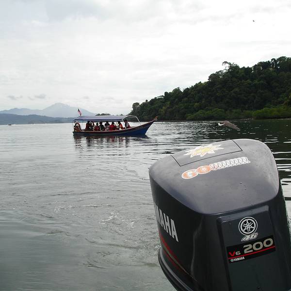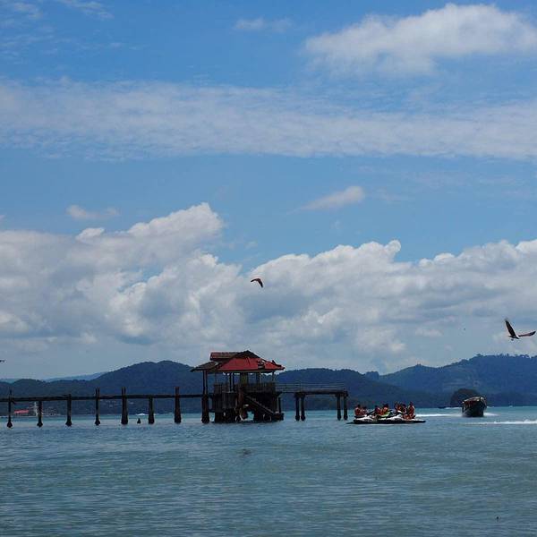 巨狮岛是兰卡威跳岛游里面的一站,可惜岛屿没有登上去,我们到达的时候刚好有几艘船在那里等待了,其...巨狮岛是兰卡威跳岛游里面的一站,可惜岛屿没有登上去,我们到达的时候刚好有几艘船在那里等待了,其中之一一艘船是可以喂老鹰的,这样可以避免老鹰长得太胖。