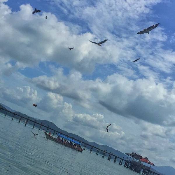 船一靠近巨狮岛,就能看见天空中有许多老鹰在盘旋,其中大多是栗鸢 (Brahminy Kite ...又叫做鹰岛,原因是这里生活着很多老鹰。船一靠近巨狮岛,就能看见天空中有许多老鹰在盘旋,其中大多是栗鸢 (Brahminy Kite eagle) 和白腹海雕 (White Bellied Sea Eagle)。船开到这里并不是要上岛,而是看喂老鹰...又叫做鹰岛,原因是这里生活着很多老鹰。船一靠近巨狮岛,就能看见天空中有许多老鹰在盘旋,其中大多是栗鸢 (Brahminy Kite eagle) 和白腹海雕 (White Bellied Sea Eagle)。船开到这里并不是要上岛,而是看喂老鹰。船上的师傅会将一些鸡皮作为饵料抛掷到船周边的海面上,以便游客可以近距离观察老鹰来捕食。只见老鹰迅速地俯冲扑向海面,还没等我看清楚,就一下子带走了饵料。 展开