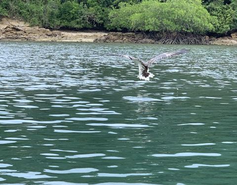 实用 之后会带我们到一个小岛上,类似个湖的地方,水是深绿色的,很多老外会下水游泳,趣味性不高,景色也一般跳岛游的其中一站,乘坐快艇大约20分钟到达湖中央,四周都是绿树环绕,主要是等待中午时分喂老鹰的项目。船员把船停稳后,拿出已制作好的鸡肉向空中抛洒,大约有5-6只老鹰会盘旋在空中然后俯冲下来叼走食物,还挺...跳岛游的其中一站,乘坐快艇大约20分钟到达湖中央,四周都是绿树环绕,主要是等待中午时分喂老鹰的项目。船员把船停稳后,拿出已制作好的鸡肉向空中抛洒,大约有5-6只老鹰会盘旋在空中然后俯冲下来叼走食物,还挺刺激的。之后会带我们到一个小岛上,类似个湖的地方,水是深绿色的,很多老外会下水游泳,趣味性不高,景色也一般。 展开