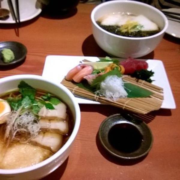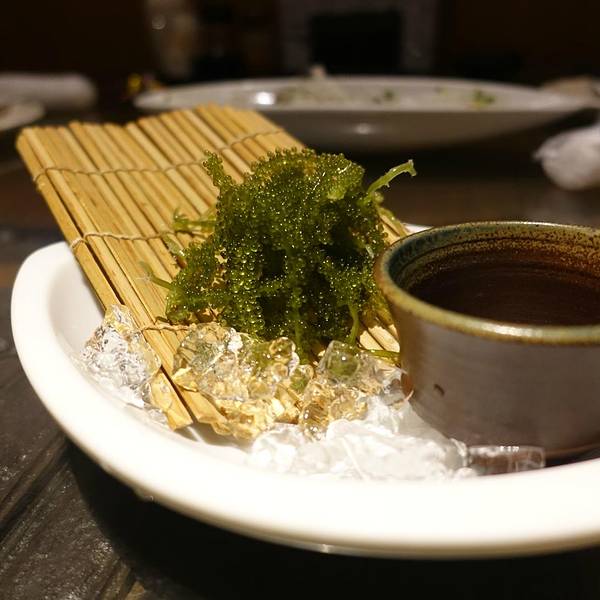大包小包地从商场出来,商场斜对面就有一家排名那霸31位的餐厅Biidoro-舞。这家餐厅算是我们冲绳之行中装潢最讲究的了。我们在这里特地点了冲绳特色拉面、各式烤肉和刺身。烤肉让我们三个都赞不绝口,但对冲绳特色拉面里口感黏黏的白色调料却不是很适应,不知道有内行人知道是什么吗?