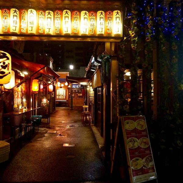大门横丁,昔日的红灯区,因入口处有巨大的门而被称为大门横丁。1934年被大火焚毁,后来重建,重现当年的地道食店。20多间屋台小店,集中西日料理,晚上当所有小店营业的时候,街内气氛非常热闹兼有特色。