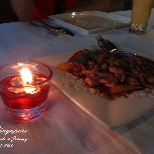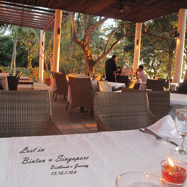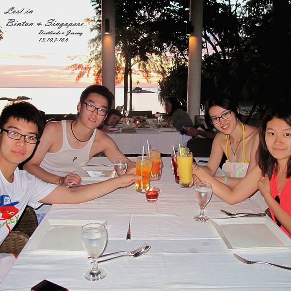 价格:CNY410.00(2人) 在娜湾花园度假村内,酒店有免费班车接送,环境相当棒,味道也是我在民丹岛上吃到味道最好的了,一定要去哦。我们在那儿点了三个菜两杯鸡尾酒,聊天聊了一个晚上,墙上壁虎在爬,对面海浪在拍打,周围人不多,就两家老美,都很nice,顿时感觉自己已冲出亚洲了。 提醒:这家店只刷VISA和MASTER CARD,不刷银联。