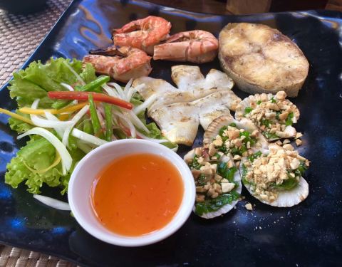 这家餐厅就在海滩的不远处,也算是这边的一家比较知名的产品了,每次经过来都特别的多人,里面的环境还是相当不错的,有一些露天的位置是我的最爱,因为晚上这边还是挺凉爽。 服务方面的话,就还算是可以,上菜还是挺快,这边的越南春卷是吃过这么多家里面算是比较不错的,应该是改良过的口感,海鲜拼盘也是很不错,性价比方面,就普普通通吧,不算便宜。