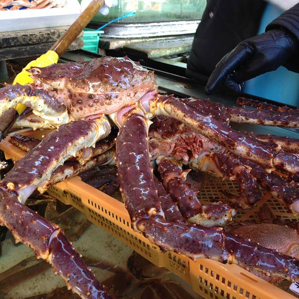 容我细细回忆下这家店~ 北海道的第一餐正餐。 和小伙伴绕着夜晚黑乎乎的绕朝市走了3、4圈。最终要放弃的时候终于发现原来近在咫尺。 和点菜的日本阿姨沟通不良。想点小的毛蟹说木有,结果点了只雪蟹上桌后,发现远处的水族箱里安静的卧着好几只小毛蟹。。点的北海道牡丹虾,上来变成蒸笼蒸了。额头下滴下一大滴汗。。 然而食物真的是美味。 雪蟹蟹肉清甜,一半刺身一半清蒸。 蒸牡丹虾还是第一次吃,嗯,倒是不难吃。 扇贝超大只,感受弹牙的满足感。 鱿鱼一夜干,来北海道怎么能不尝尝一夜干呢。有韧性,嚼劲十足,搭配的类似美乃滋的酱料也不错。 鸡蛋卷,嫩嫩嫩的鸡蛋卷,吃起来也是甜丝丝的。 再来两杯生啤,瞬间感觉人生圆满了。