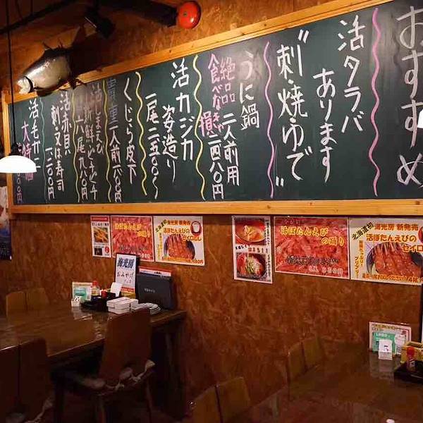 这家店经营批发螃蟹、活海鲜,店门前的大水槽里的活鱼、活鱿鱼、活螃蟹吸引着众多慕名而来的食客。当然来店里的不仅观光客人很多,当地人也很多。在店里你会品尝到海鲜生鱼片、炭火烧、海鲜盖饭等口味不同的海味。