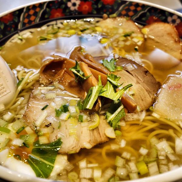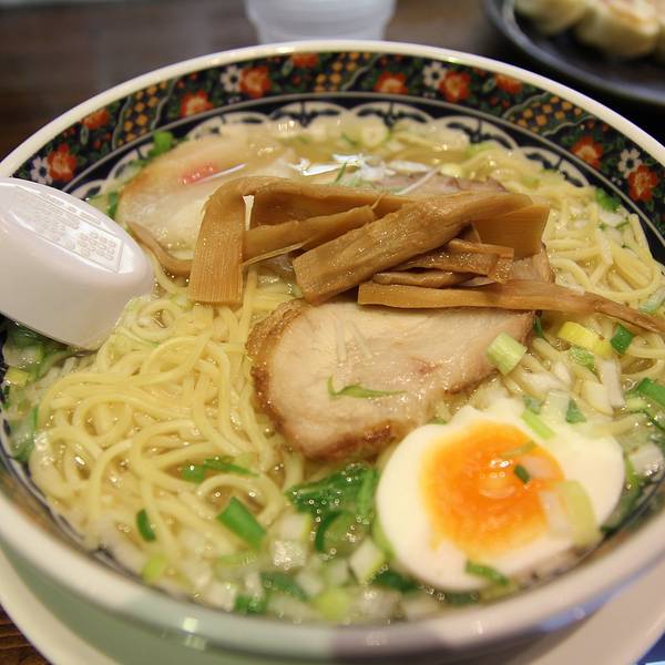 推薦"味彩塩拉面",700日元一份,拉面用的湯是用鶏架子、猪大骨、海带等作底料煮成的透明湯,再加上秘伝材料配制而成。具有味道濃厚、飽而不腻的特点。使用的面是特别定做的中细直面。清淡的汤里,放入適量的辣椒面儿,吃起来順口滑溜,面条的粗细適度和湯的味道正相配。