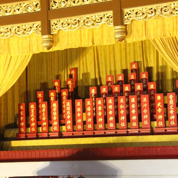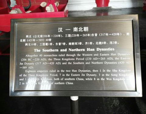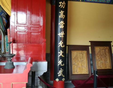 旁边还有个百家姓展览,有意思的是可以看到自己的姓氏的来源,一般来说都是三皇五帝时期分封诸侯的属地的名。可以买姓的纪念品,三块钱一张,可以当书签。最后有一个关帝庙,关帝庙里没什么新鲜的。