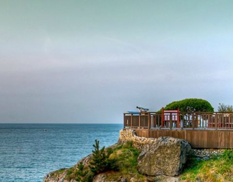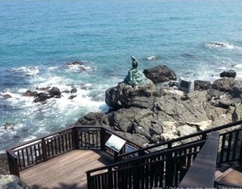 五六岛位于釜山南区的一端,每天随潮水涨退情况不同会露出五个或六个小岛,是釜山市的受保护自然区。五六岛是岩石岛,由两部分组成。从陆地延伸的五个岛中除灯塔岛外都是无人居住的岛屿。这五个岛分别是雨朔岛(32m)、鹰岛(33m)、锥岛(37m)、牡蛎岛(68m)、灯塔岛(28m),五六岛是进入釜山港的各种船只必经之地,因此也是釜山港的象征。五六岛在1972年被指定为釜山第22号纪念物,并在2007年被评为国家第24个指定文化遗产。雨塑岛五六岛中负责渲染神秘色彩的是雨塑岛,此岛底部为一个岛,但上部分分为两个。当落潮时海水褪去,他就呈现出一个岛的样子,当涨潮时,海水淹没雨塑岛的底部,就变成了两个岛,因而包括周围的岛有时是五个有时是六个,五六岛的名字大概由此而来。在分成两个的雨塑岛中,一个岛因松树多就叫“松岛”,而另一个岛的样子像用盾牌挡住松岛就叫“盾牌岛”。天空步道(skywalk)天空步道位于海岸散步道的南端,步行在天空步道上可以远眺五六岛,以及远处的海云台和海岸线。天空步道建设在37米高的岩石绝壁上,约向海面伸出了9米的步道是呈U字型的步道,悬空在海面上。五六岛都为纯岩石岛,岛上没有沙石之类的退积物。据考证,此岛形成于1亿年前的白垩纪,在海风和浪涛中不断地进行侵蚀运动和隆起运动,才逐渐变成现在的模样。