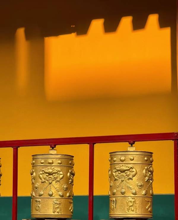 藏经阁里,烛台上的火苗,明明暗暗。门旁的墙边,有妇人在擦洗烛台,我注视良久。又见一喇嘛在背阴的墙下,为烛台镀金,然后晾晒。