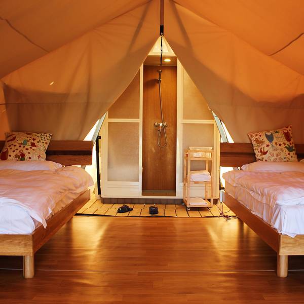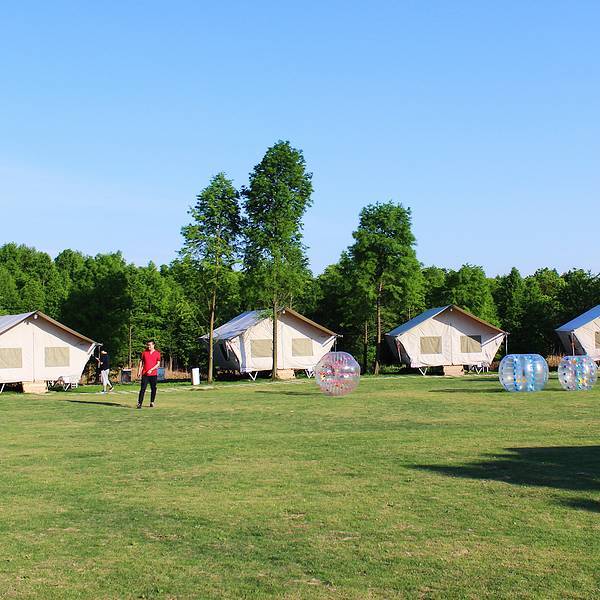 首先说地热,南方生活的童鞋一定很好奇吧,通俗的说就是地板会发热,是的很通俗。先爆个料,小编是学室内环境专业出身的,本来可以成为一个正经的暖通工程师,自己也没想到自己竟成为了一个喜欢旅行热衷体验的880线的网红呢!说正事,东北的地热是通过锅炉烧水通到各家各户的,而这里的地热则是用电来发热。同样的效果,只是可控性更强了,需要什么温度可以自己调节。除了地热每个帐篷还配备一台空调,总之你是不会觉得冷的。因为有地热系统,你可以随时随地席地而坐和家人朋友促膝聊天。帐篷的侧边和顶部也有可以开合的观景窗,随时就可以与大自然融为一体。帐篷内部结构很大,有三间屋子,从里到外分别是洗手间、卧室、客厅。麻雀不小,五脏超全。室外是一大片草地,看着全家人带着孩子在踢足球也好生羡慕,阳光静好,妻子在旁,孩子在闹,也是幸福到窒息。生活不止是眼前的苟且,还有帐篷和远方的田野。在魔都森林公园的草地上,一群有趣的人搭建了一个坐落在森林公园内别致的住宿营地地----牛路野营度假村,一个坐落于公园腹地的二次元空间。帐篷内是家,帐篷外是世界。到了夜晚,远离城市的机车声,呼吸最新鲜最甜的空气,仰头就是漫天的繁星,朋友一起就打打牌听听音乐。情侣一起就看星空谈恋爱+虐单身狗!哈哈。全家一起来就给孩子看看银河讲讲牛郎织女的故事。带爸妈来就饭后散散步,看看夕阳,看看爸妈老去的样子,看看未来的自己。