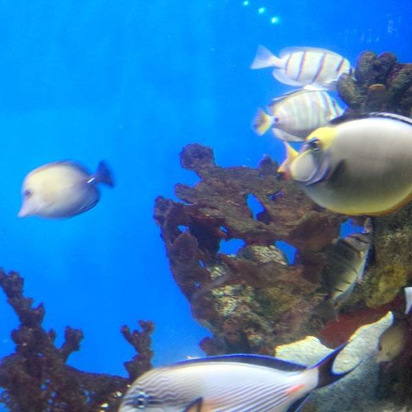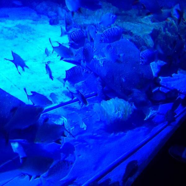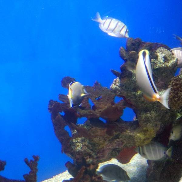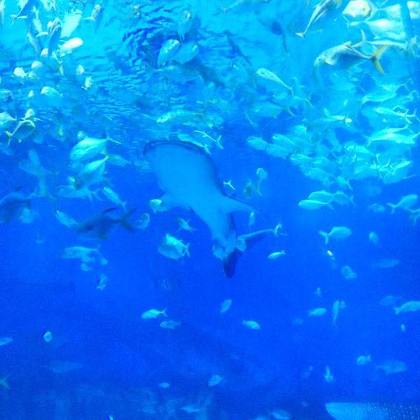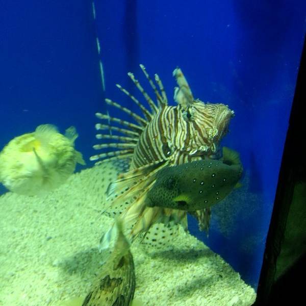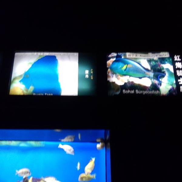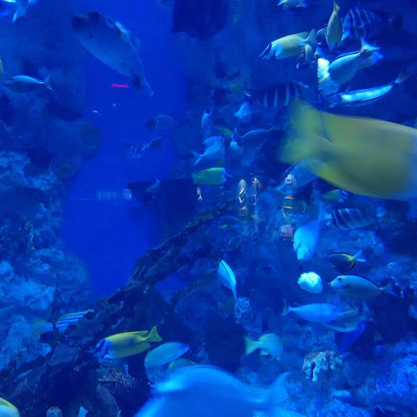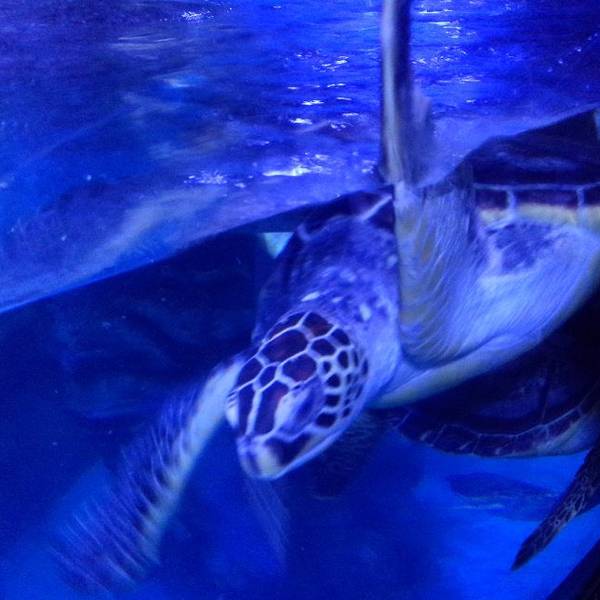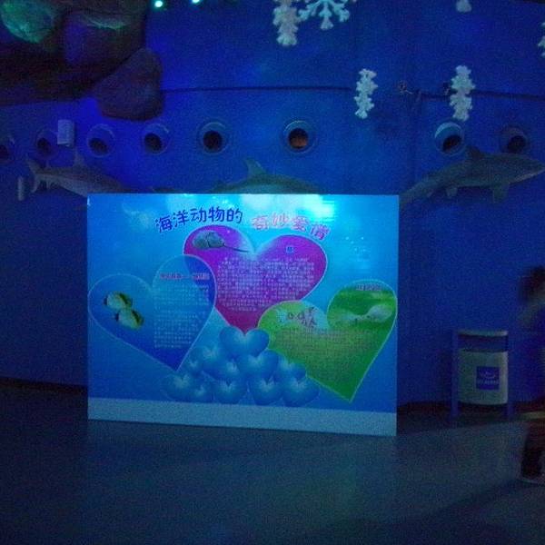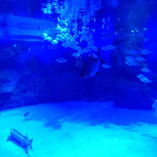(2) 各种鱼,还有海龟,珊瑚,有的在小水箱里,哦,还有一个超大的超大的,像一个巨幕电影一样的水族箱(= =我不知道怎么形容),里面有虎鲨,鲸鱼,安康鱼还有一些其他的不知名的鱼。虽然你不知道他们叫什么,但是看着它们在蓝色的大水族箱里游泳,真的,你能感受到那种生命的美丽。