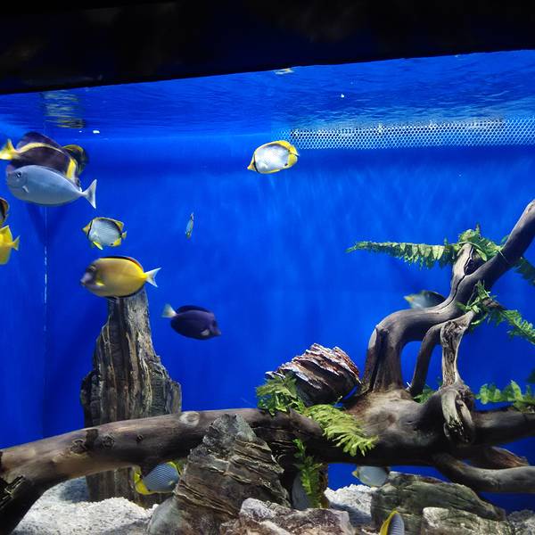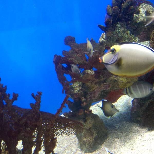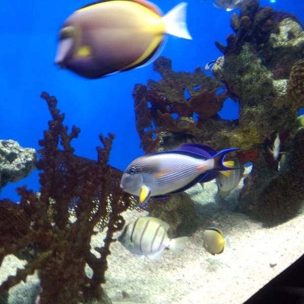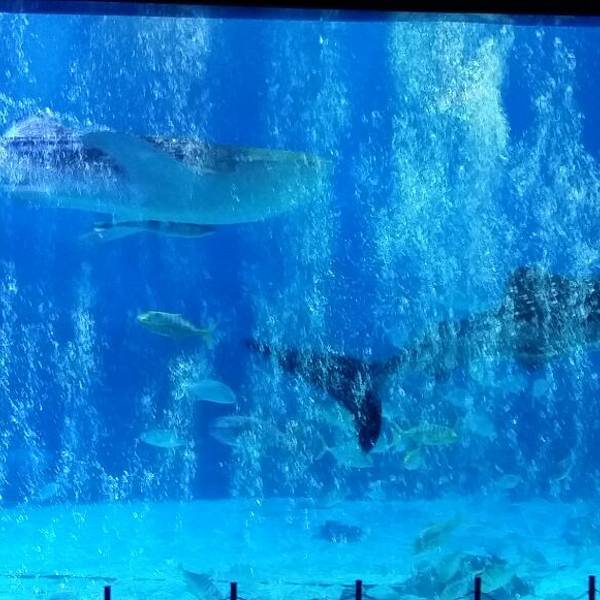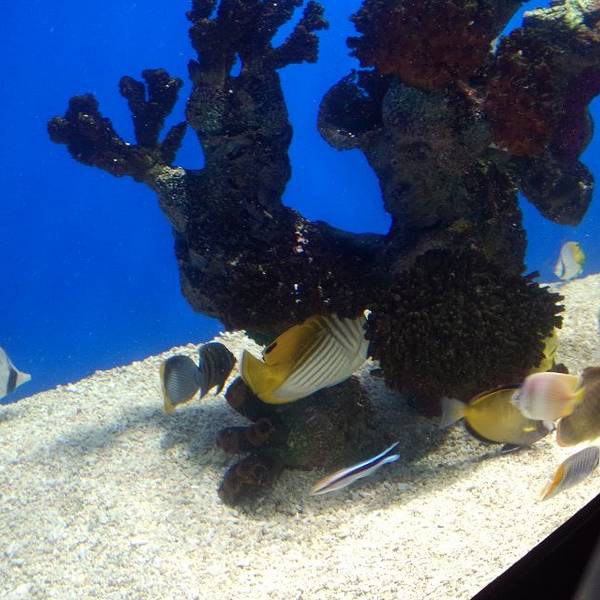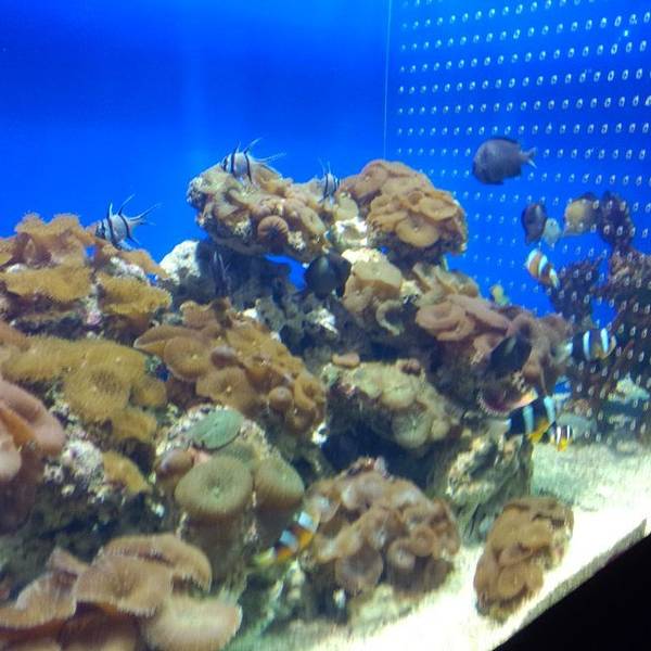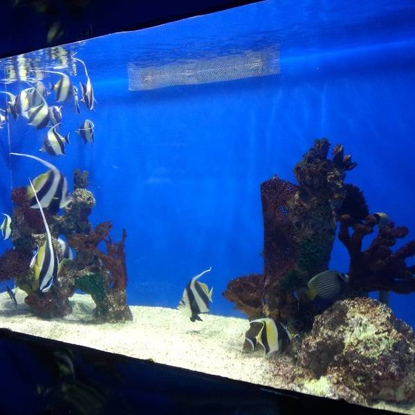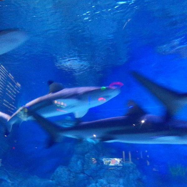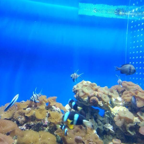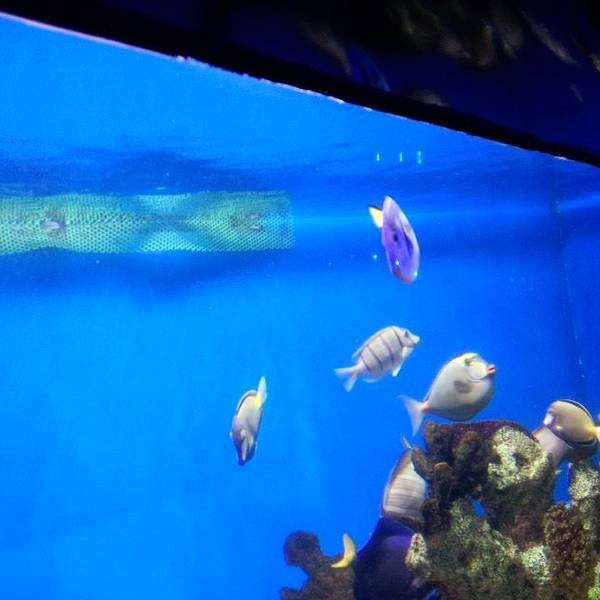 (2) 各种鱼,还有海龟,珊瑚,有的在小水箱里,哦,还有一个超大的超大的,像一个巨幕电影一样的水族箱(= =我不知道怎么形容),里面有虎鲨,鲸鱼,安康鱼还有一些其他的不知名的鱼。虽然你不知道他们叫什么,但是看着它们在蓝色的大水族箱里游泳,真的,你能感受到那种生命的美丽。