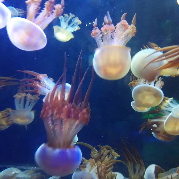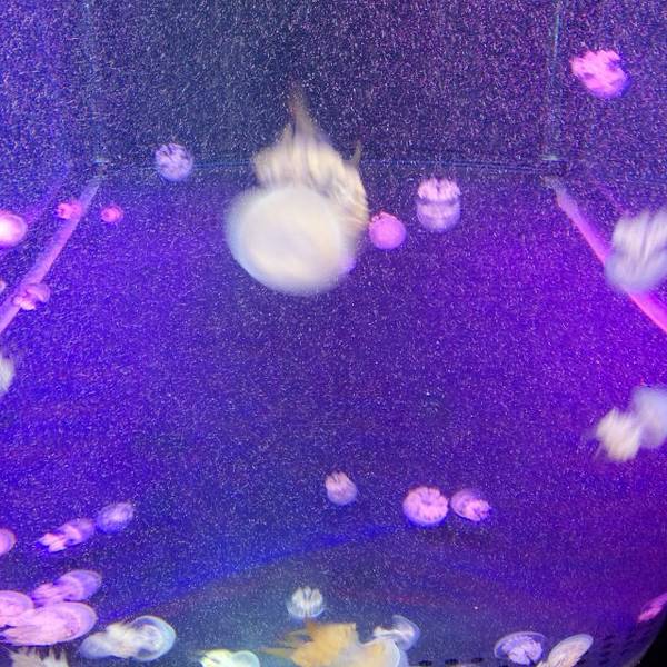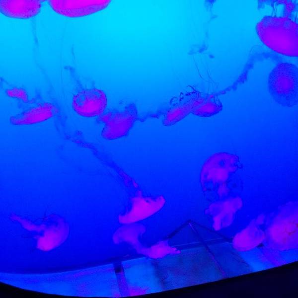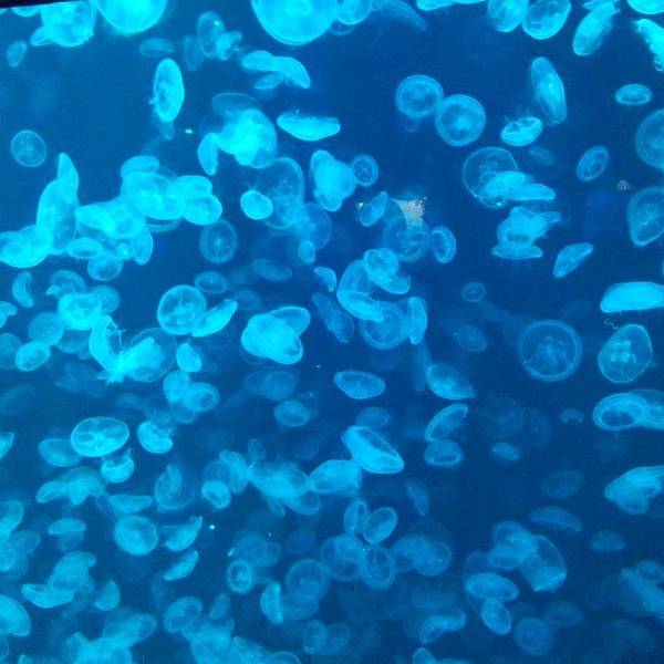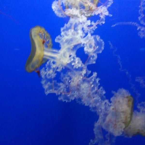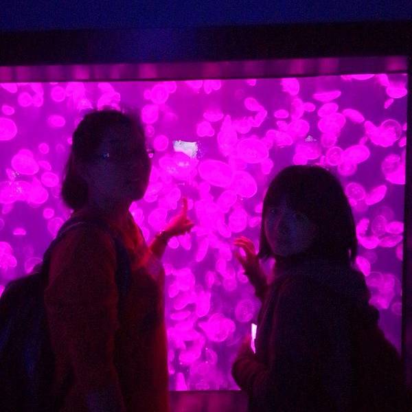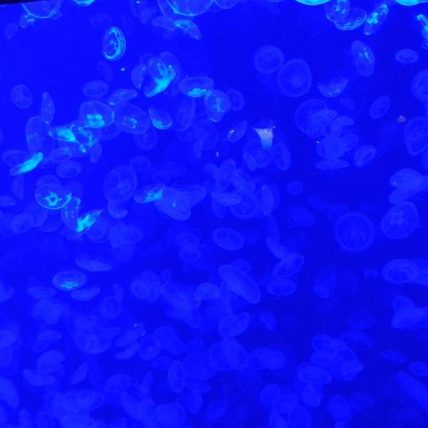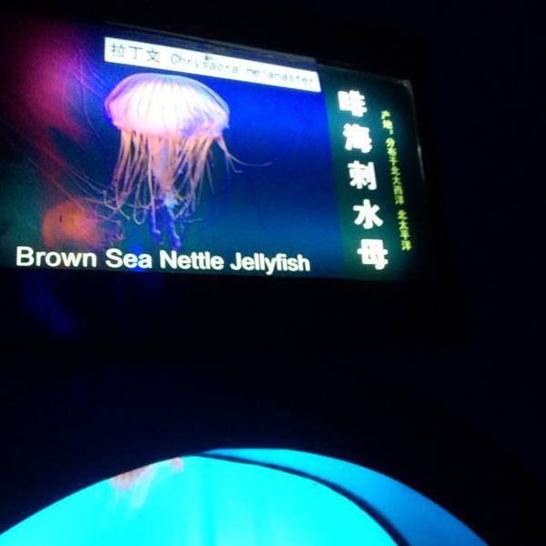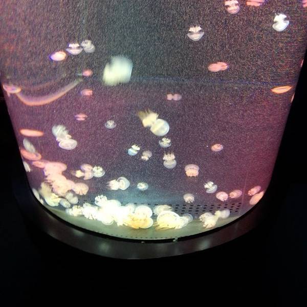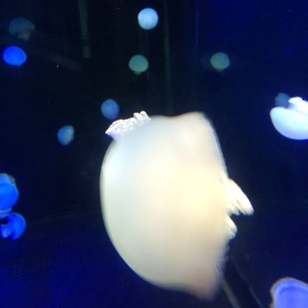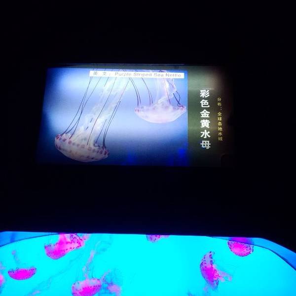 (1) 水母:有各种水母,各种形状,颜色,姿态的水母。看着她们在水里恣意的游,像是仙女,像漂浮的自由的蒲公英,在彩色灯的映照下如梦如幻。