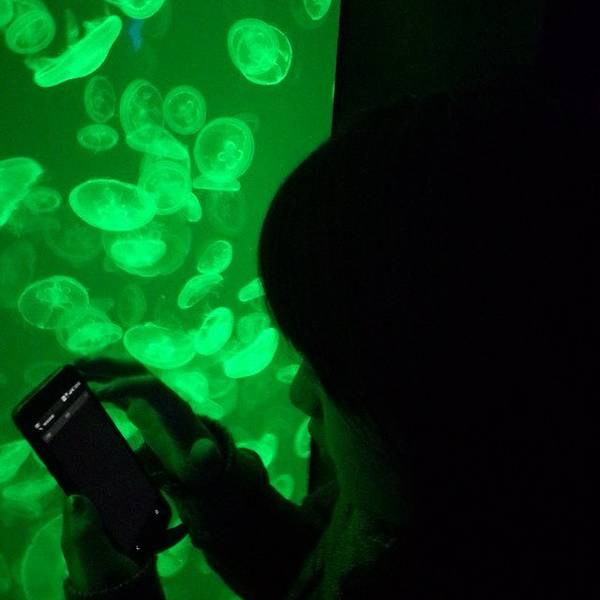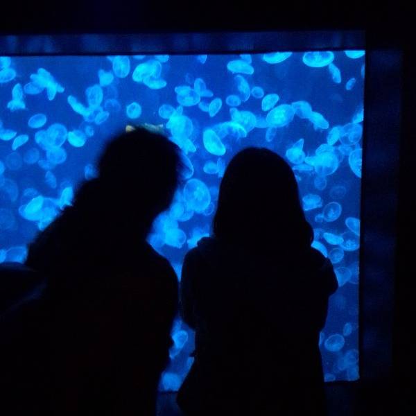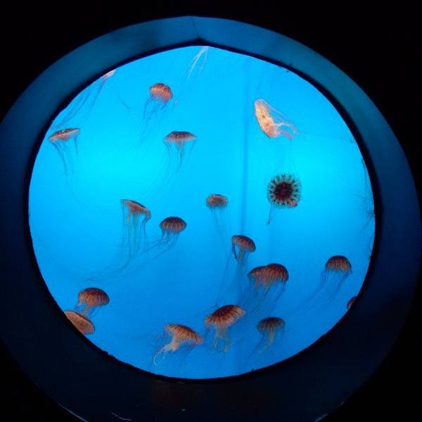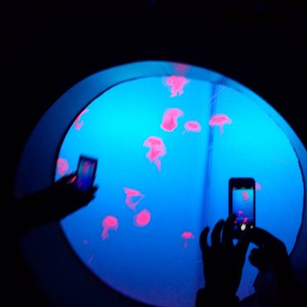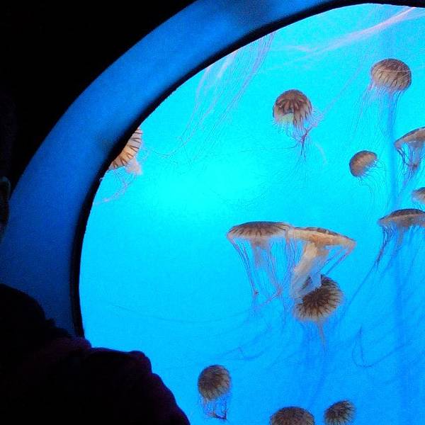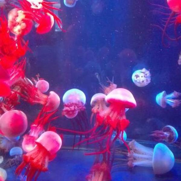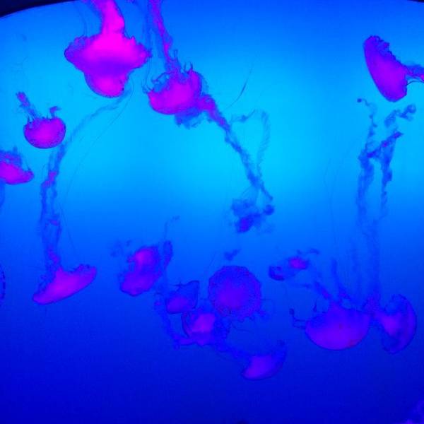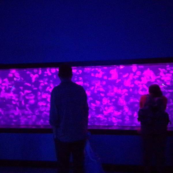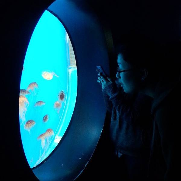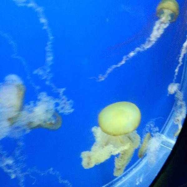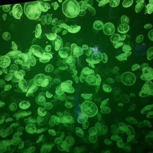 (1) 水母:有各种水母,各种形状,颜色,姿态的水母。看着她们在水里恣意的游,像是仙女,像漂浮的自由的蒲公英,在彩色灯的映照下如梦如幻。