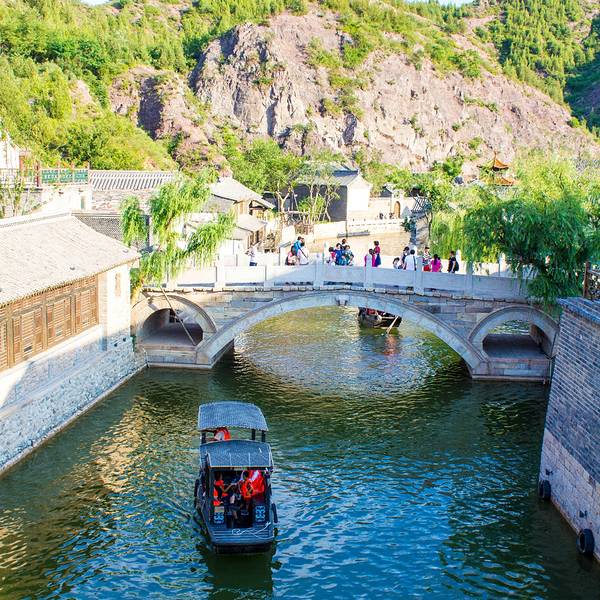 - **古北水镇**:融合了南北方的建筑风格和风情,既有江南水乡的韵味,又有北方古镇的特色。它不仅靠近著名的司马台长城,自身也是一处集观光游览、休闲度假、商务会展、创意文化等多功能于一体的综合性国际旅游度假区。