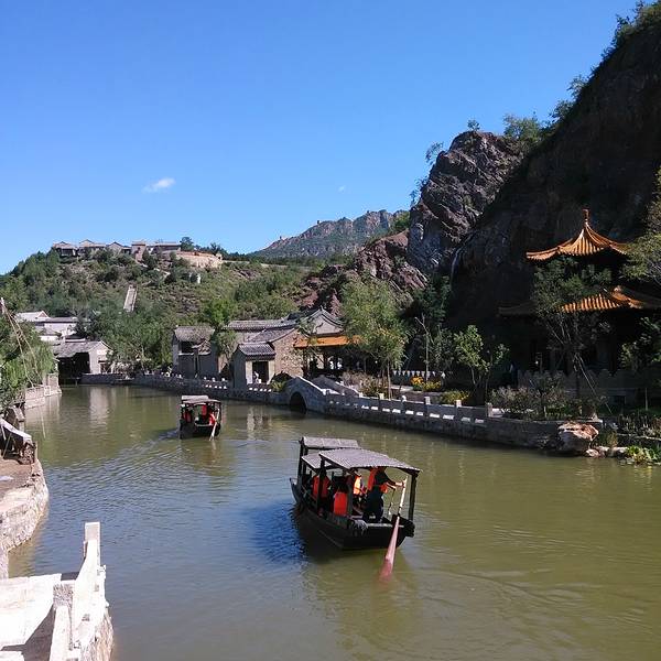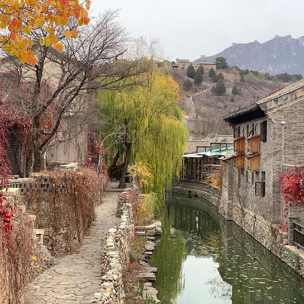 2.古镇内的酒吧旁的河那块都是可以远观长城的,坐在河边看小船来来往往,喝点咖啡看着长城也是超棒。