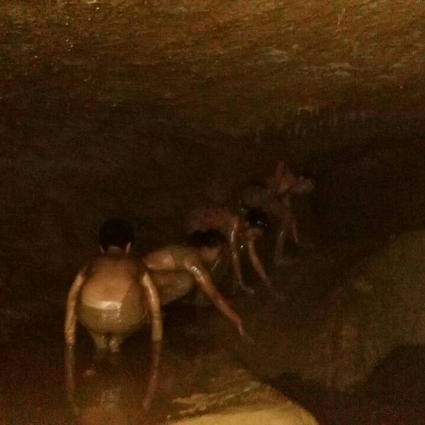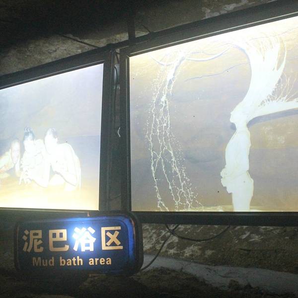 金水岩溶洞的末端是泥浆浴和温泉浴,两者紧挨着,泥浆浴内的泥巴很厚,有种稻田的感觉,水温冰凉。温泉浴的水温温和而已,不过和常规温泉水比起来会凉一些,脱下来的衣服裤子,只能放在一侧的架子上,注意自己的贵重物品。淋浴室紧挨着,有些简陋。